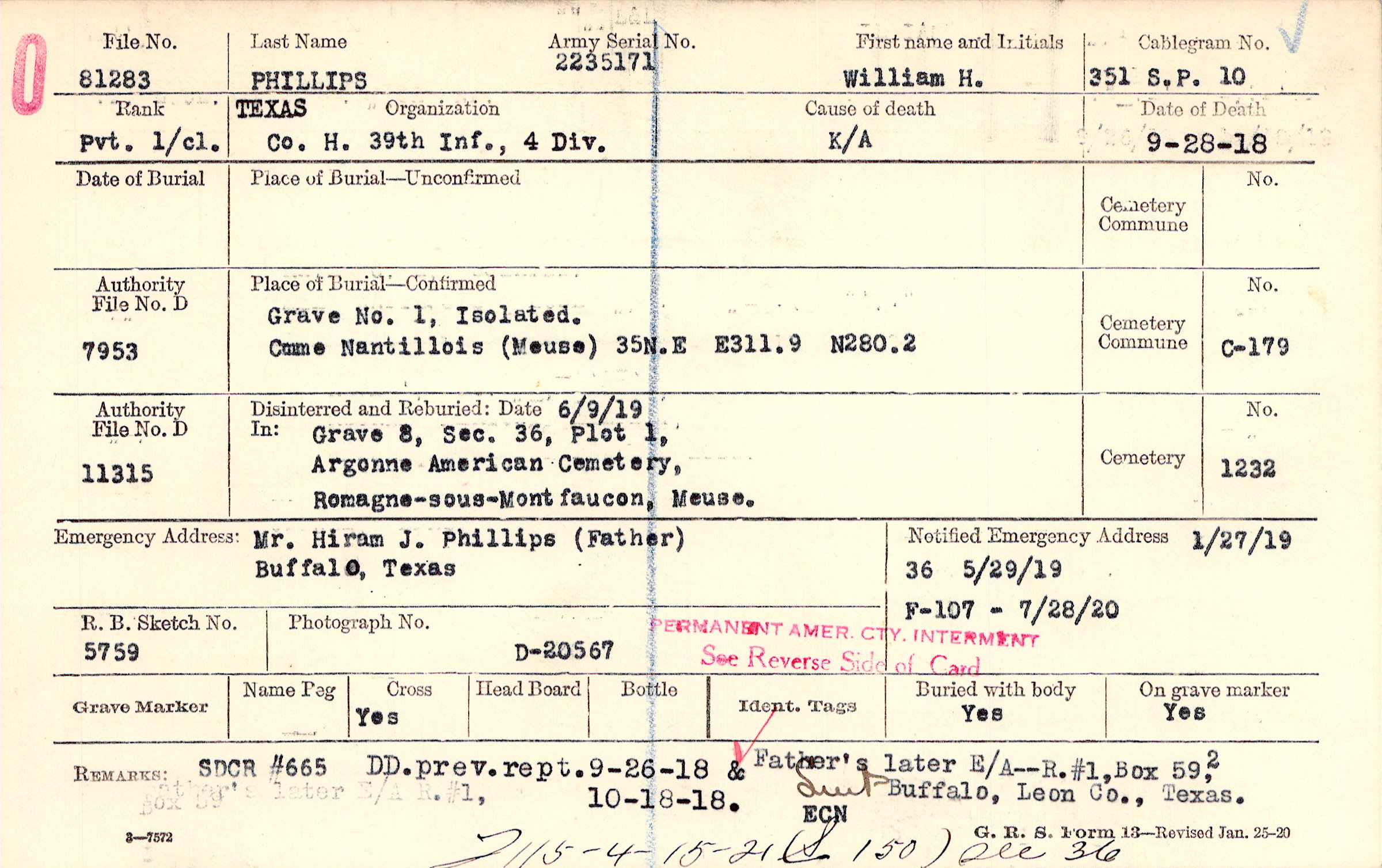 DD. prev. rept. 9-26-18 & 10-18-18. Father's later E/A--R/#1, Box 59, Buffalo, Leon Co., Texas, F115 - 4-15-21 (S150) sec 36, SDCR #665