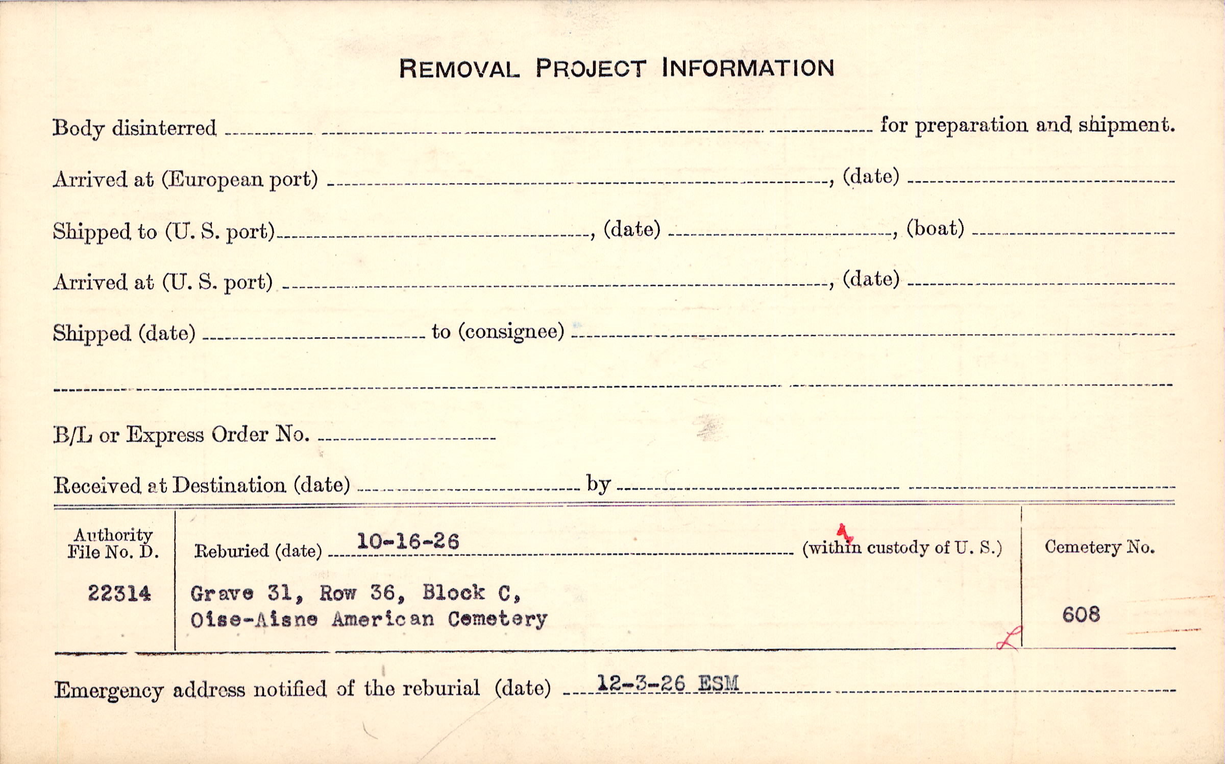 American B/A Cemetery, Seringes-et-Nesles, Aisne, morgue 608