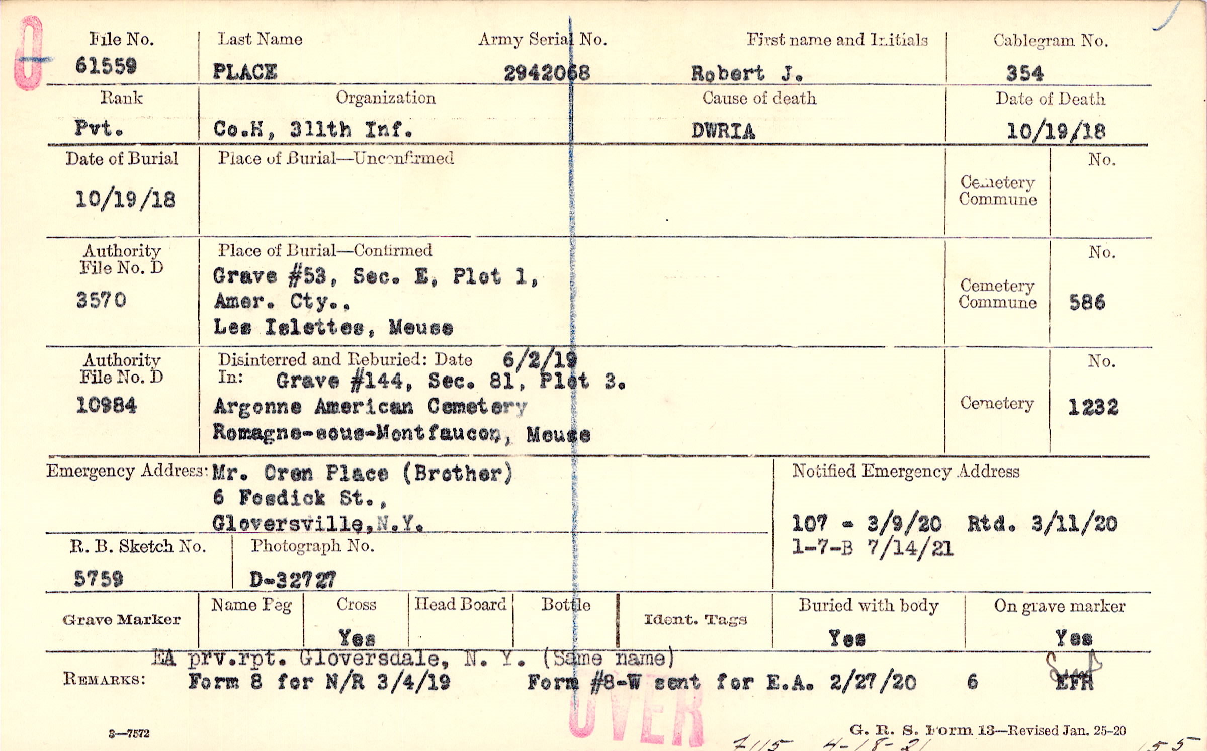 Grave #53, Sec. E, Plot 1, Amer. Cty., Les Islettes, Meuse.
