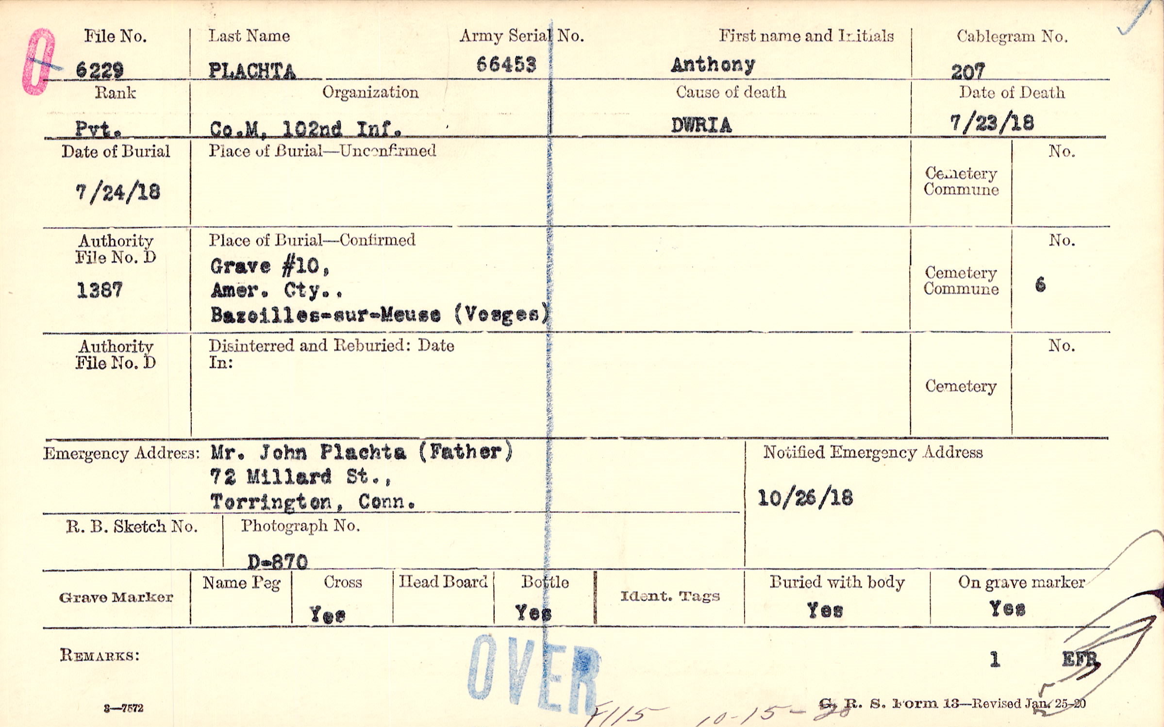 Grave #10, Amer. Cty., Bazoilles-sur-Meuse, Vosges