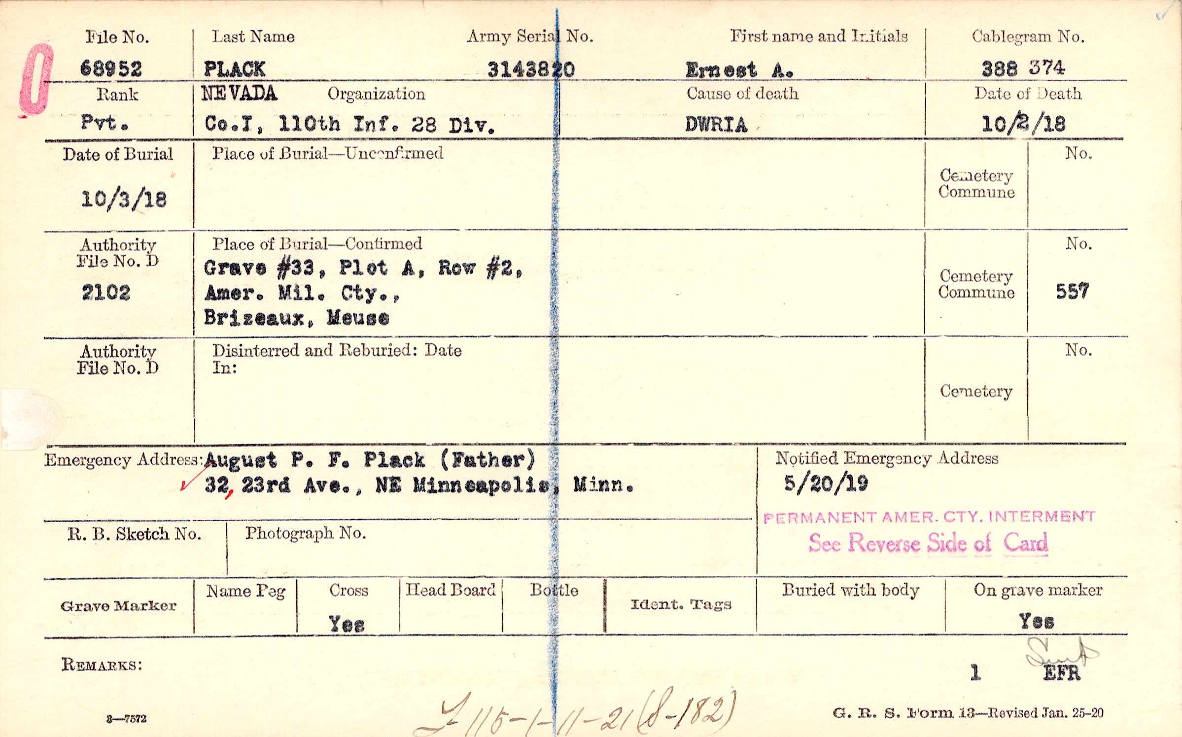 August P. F. Plack (Father), 32, 23rd Ave., NE Minneapolis, Minn.