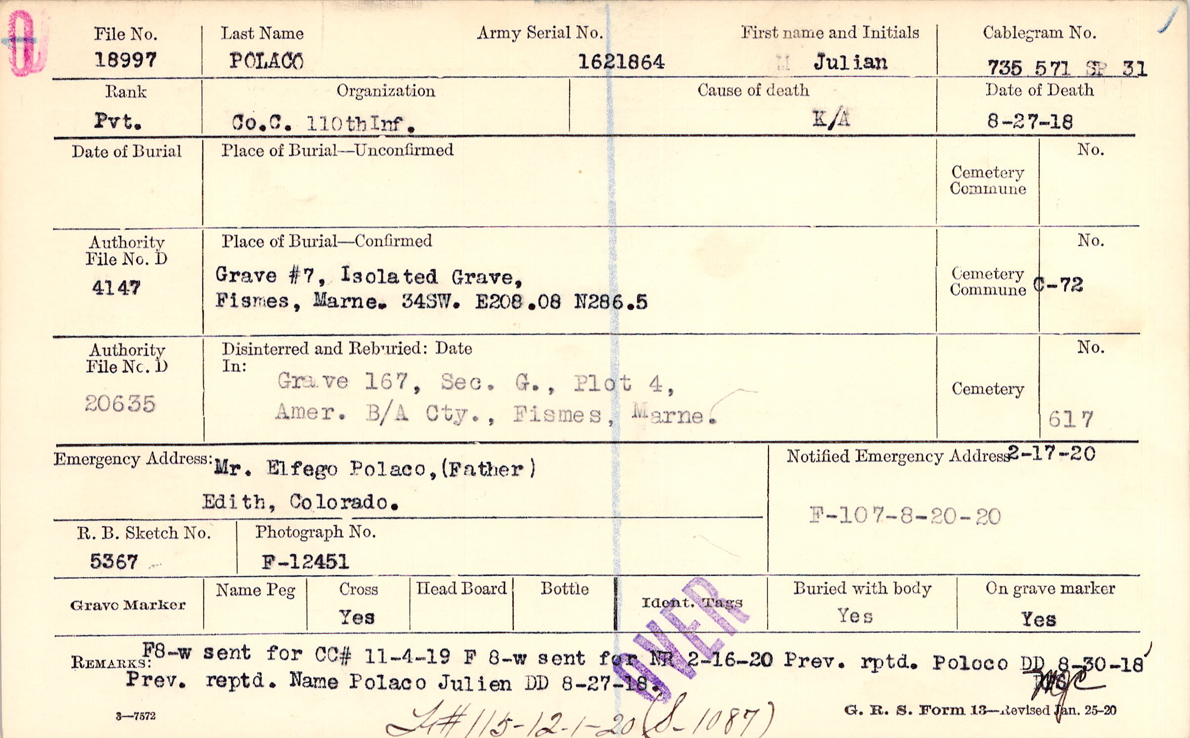 Mr. Elfego Polaco, (Father), Edith, Colorado.