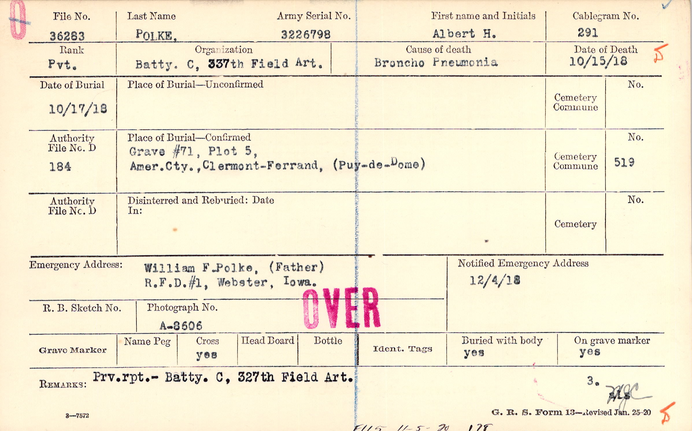 Grave #71, Plot 5, Amer. Cty., Clermont-Ferrand, (Puy-de-Dome)