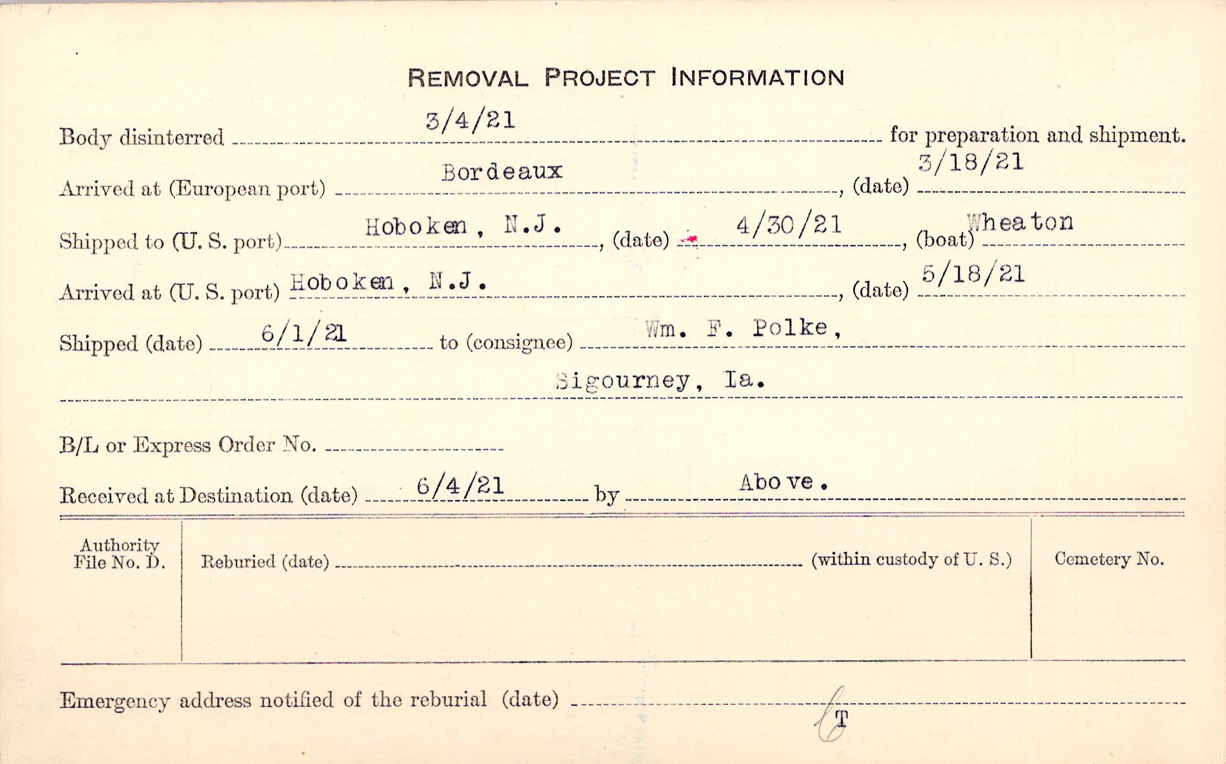 William F. Polke, (Father), R.F.D.#1, Webster, Iowa.