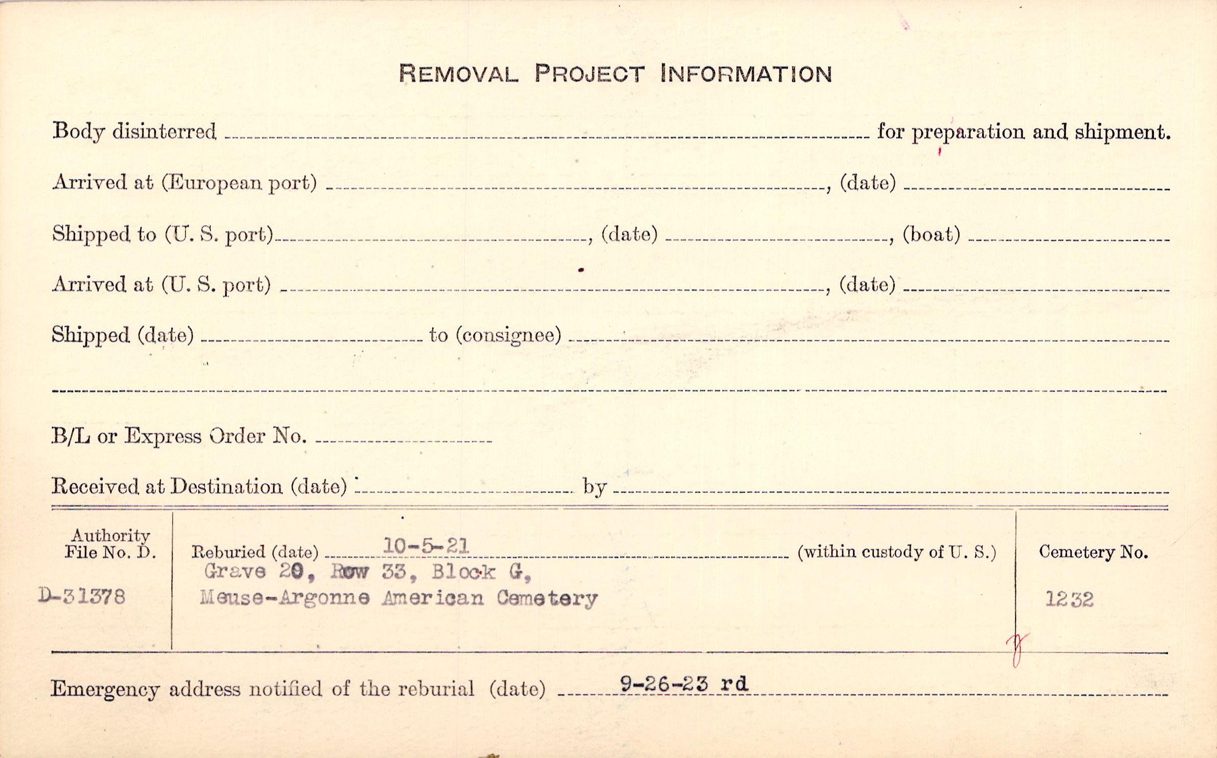Grave 17, Amer. B/A Cty., Romagne-sous-Montfaucon, Meuse