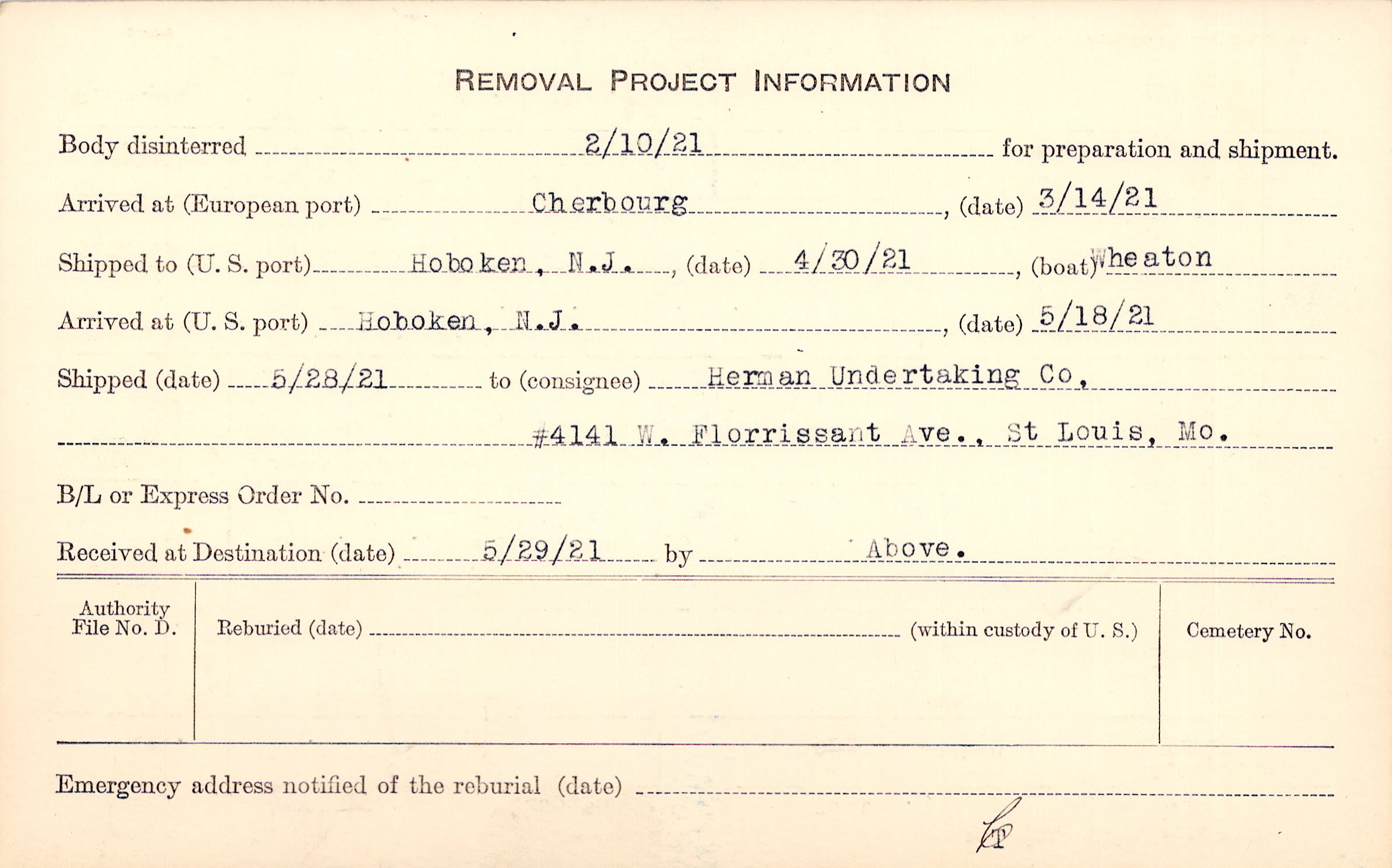 to Herman Undertaking Co., #4141 W. Florrissant Ave., St. Louis, Mo.