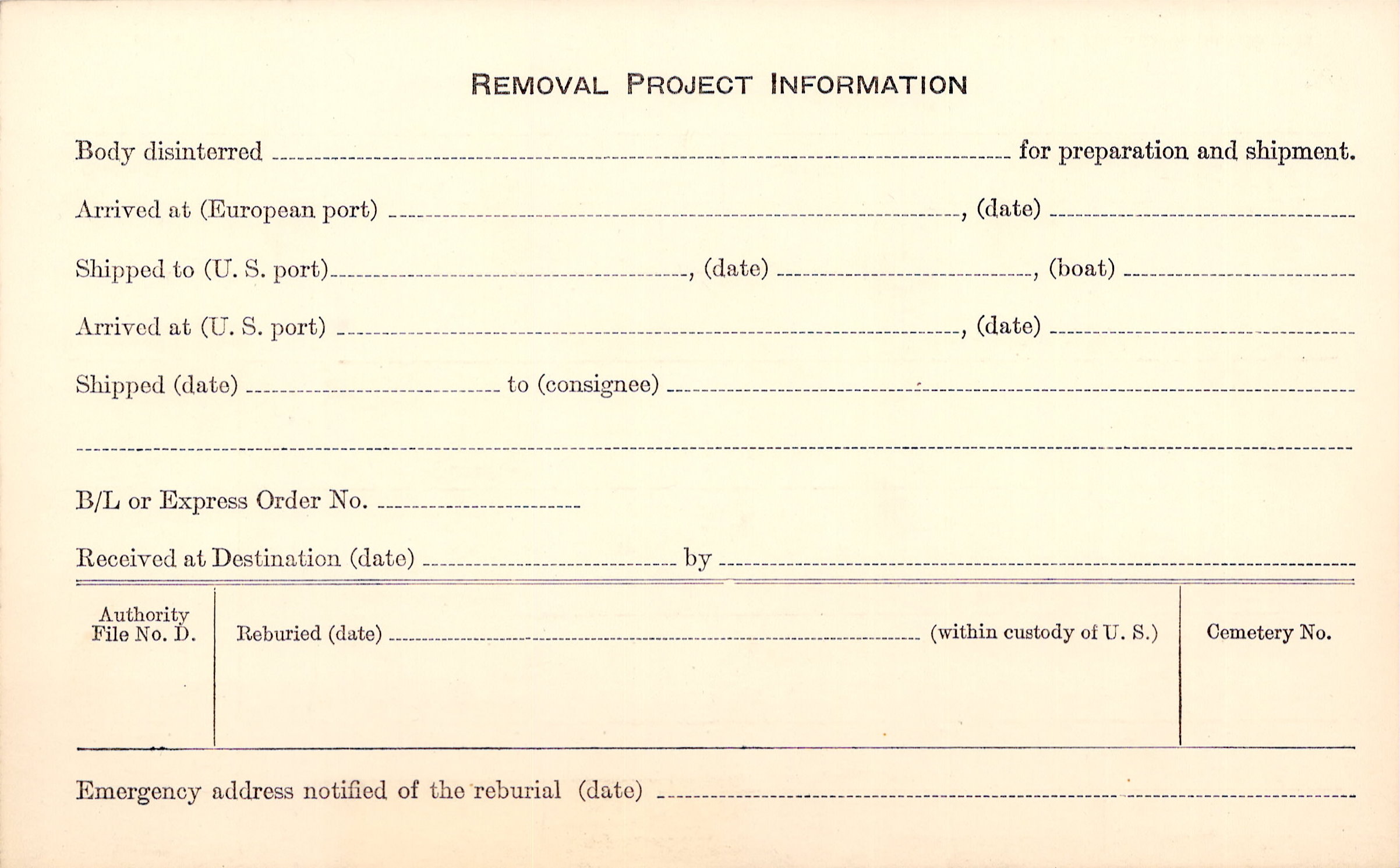 Buried at Sea from U. S. S. President Grant on voyage ending Oct. 7th 1918.