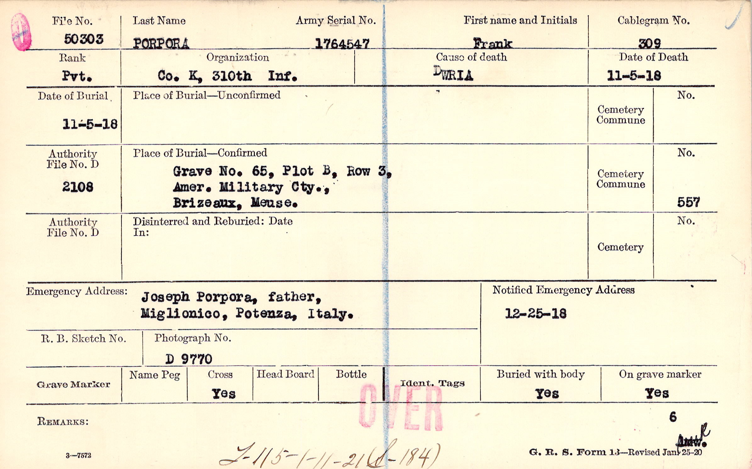 Grave 65, Plot B, Row 3, Amer. Military Cty., Brizeaux, Meuse.