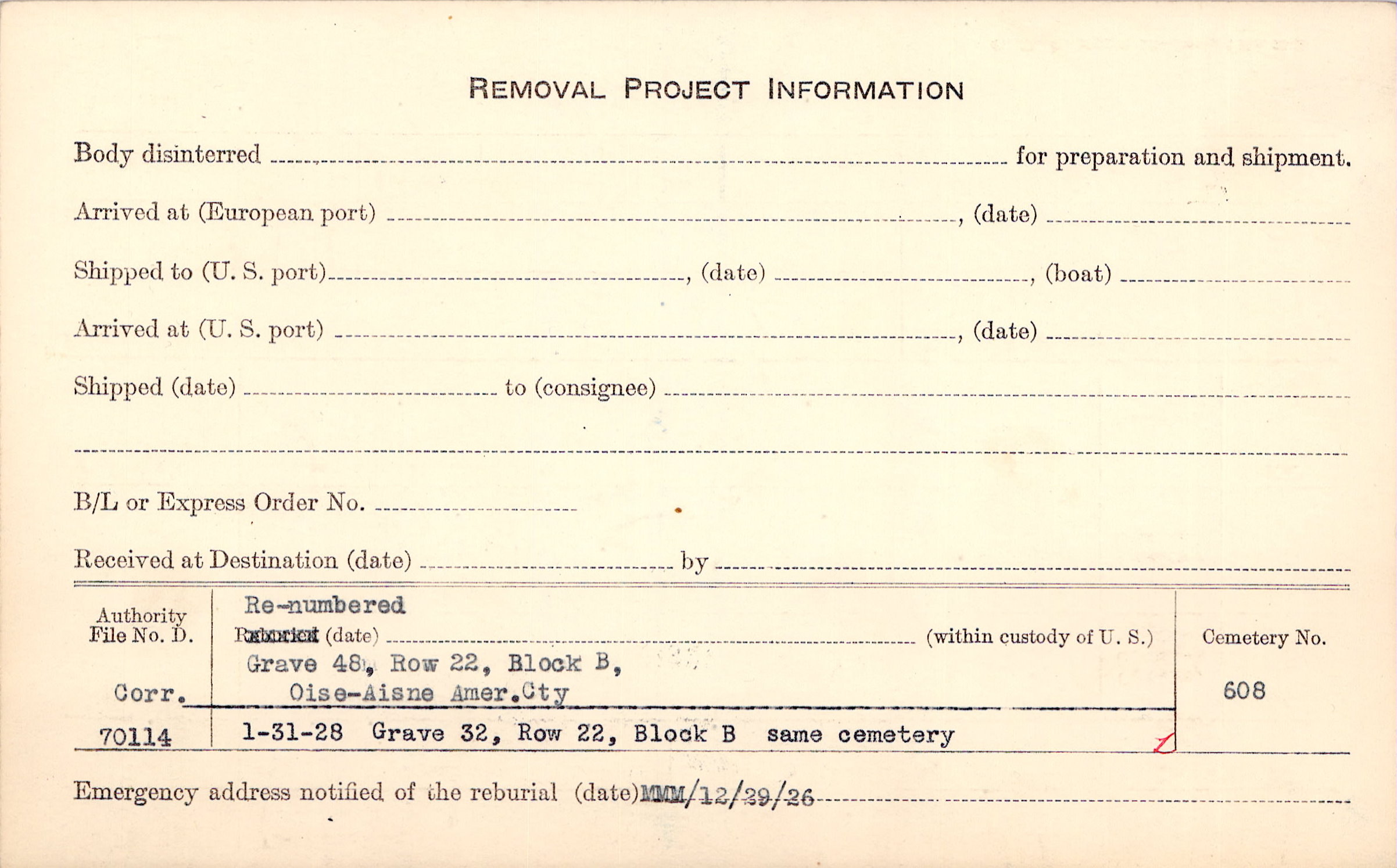 Grave #15, Amer.B/A Cty., Les Pres Farm., Chery Chartreuve, Aisne.