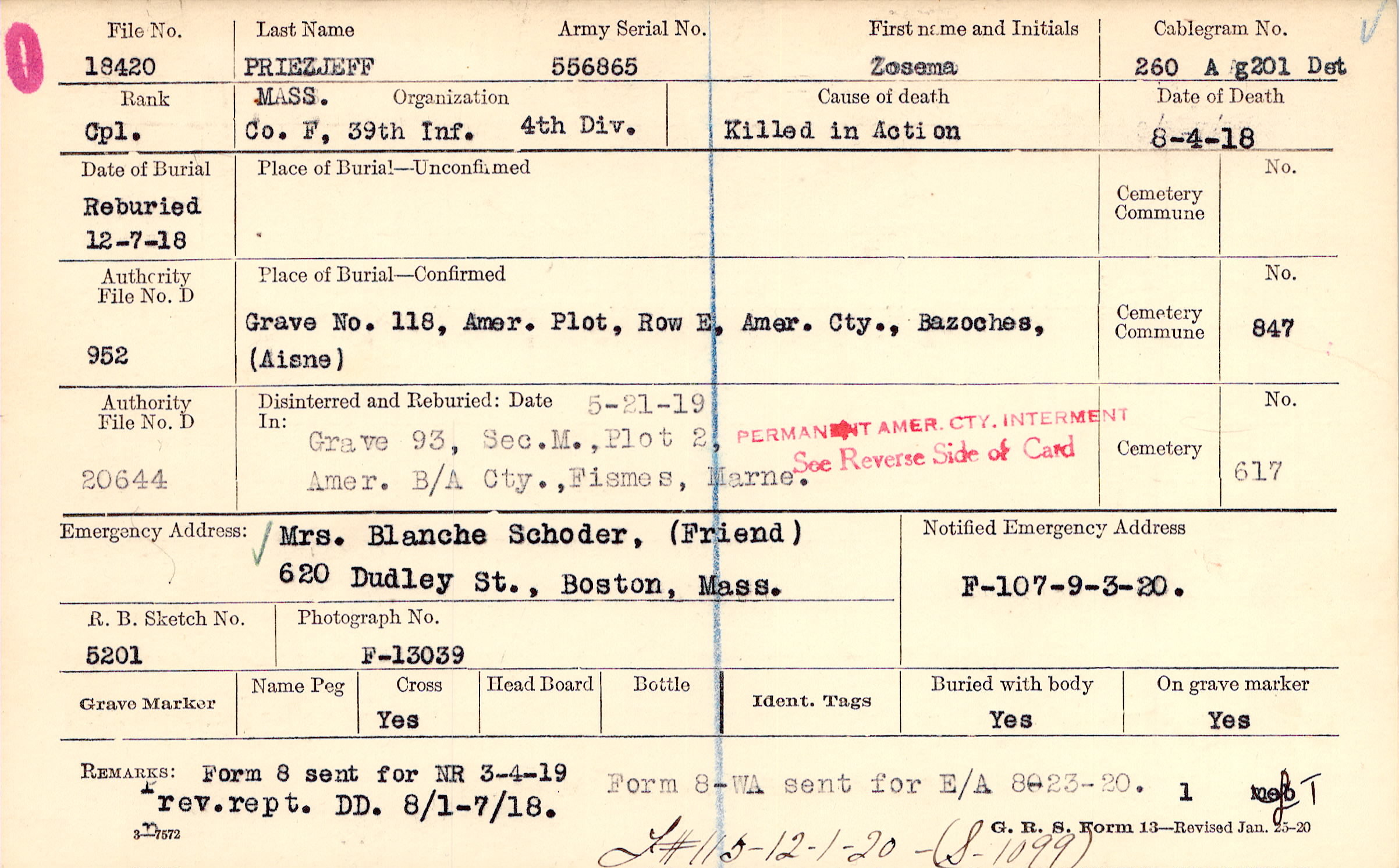 Reburied 12/7/1918