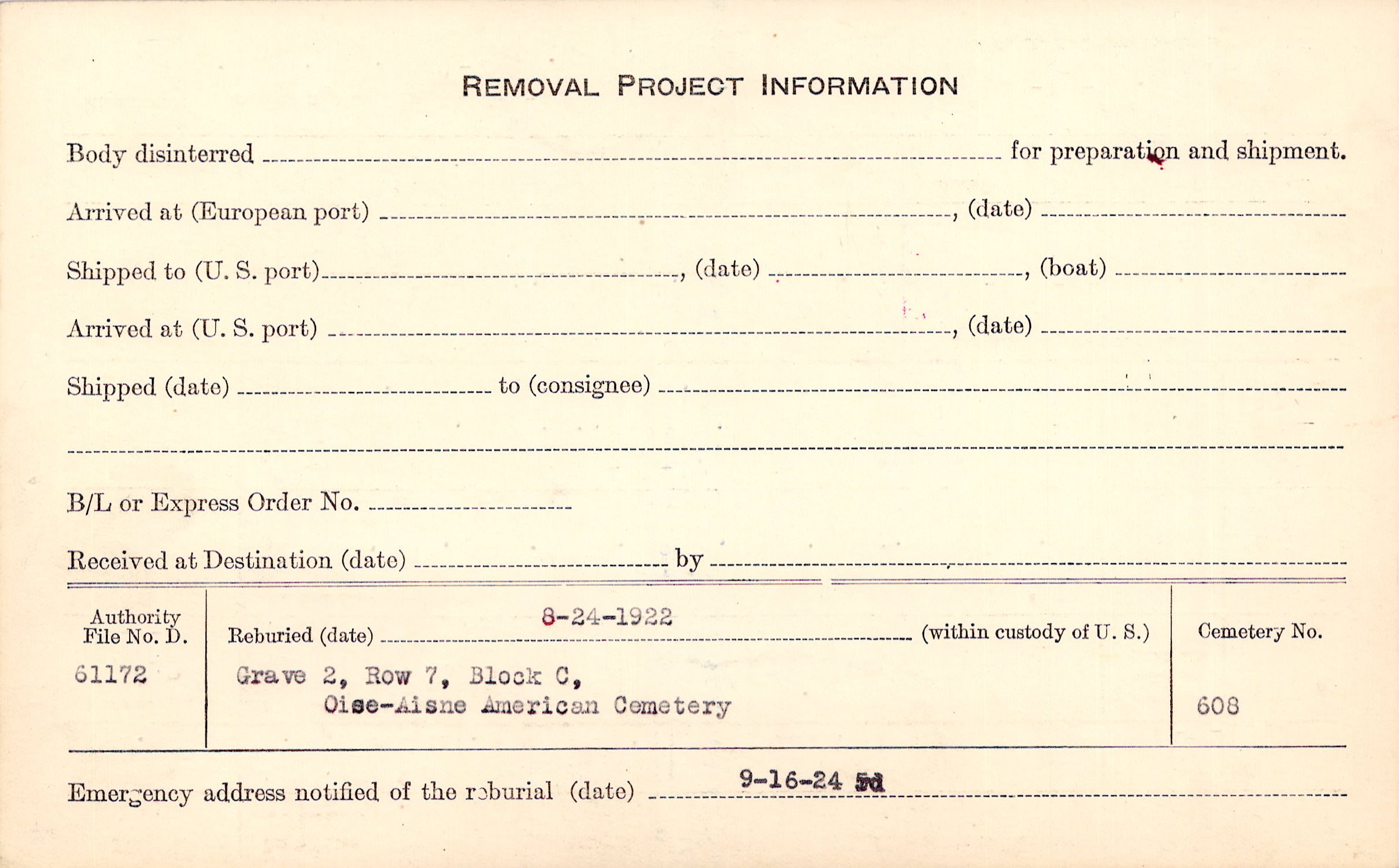 | Permanent Burial in Foreign Cemetery |