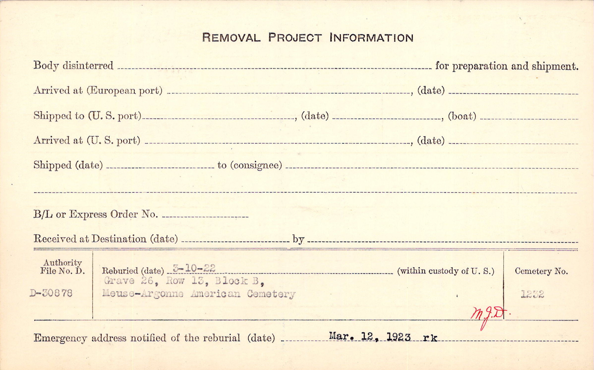 Grave 9, Amer. Battle Area Cty., Nantillois, Meuse