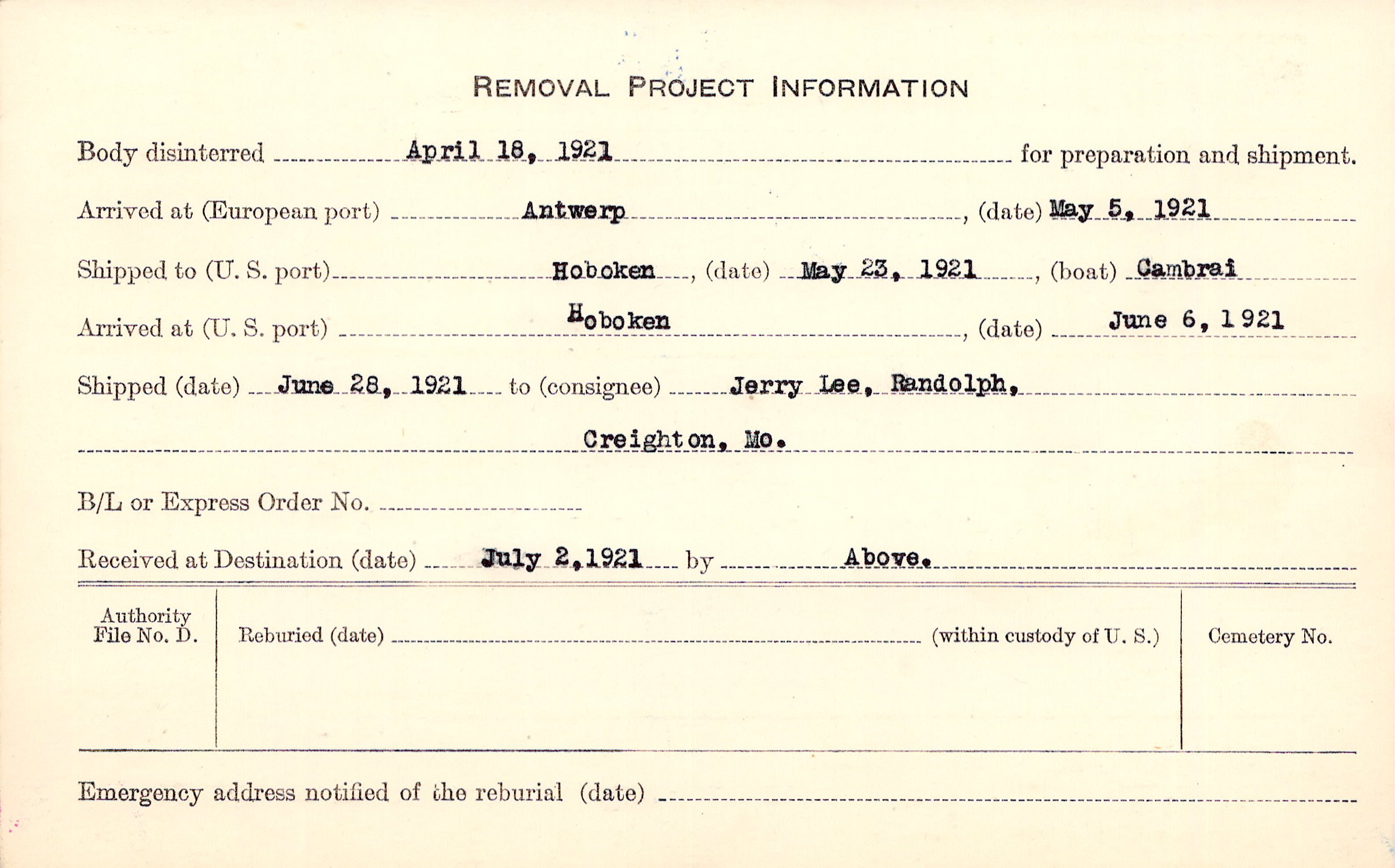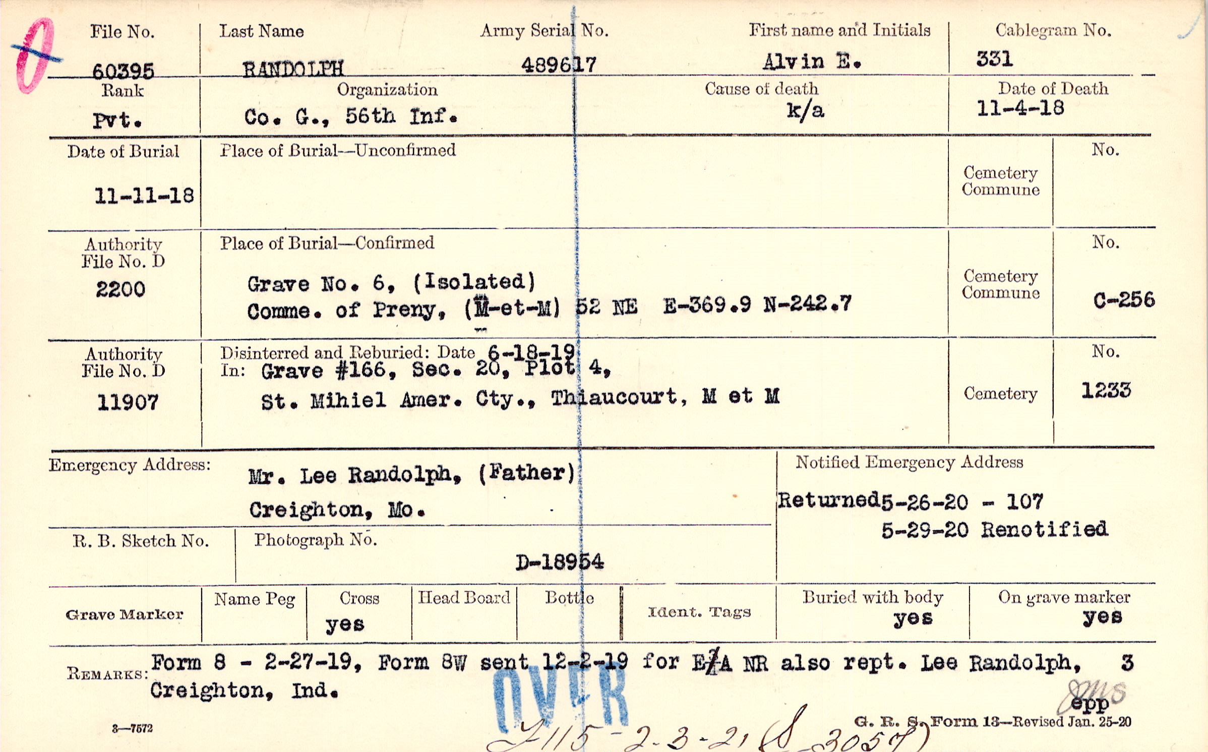 Returned Form 107: 5/26/1920, 5/29/1920 Renotified
