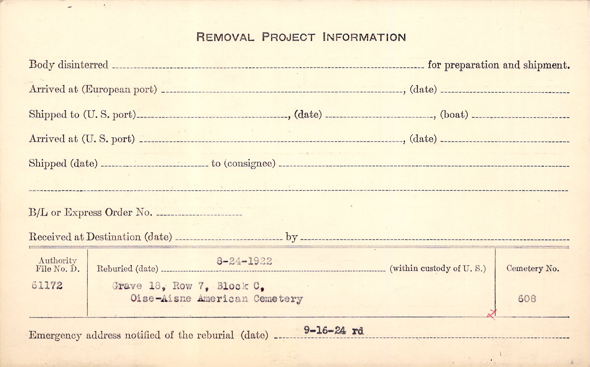 | Permanent Burial in Foreign Cemetery |