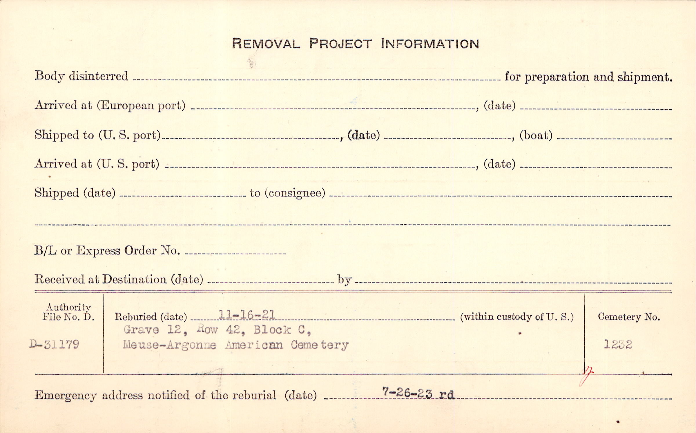 | Permanent Burial in Foreign Cemetery |