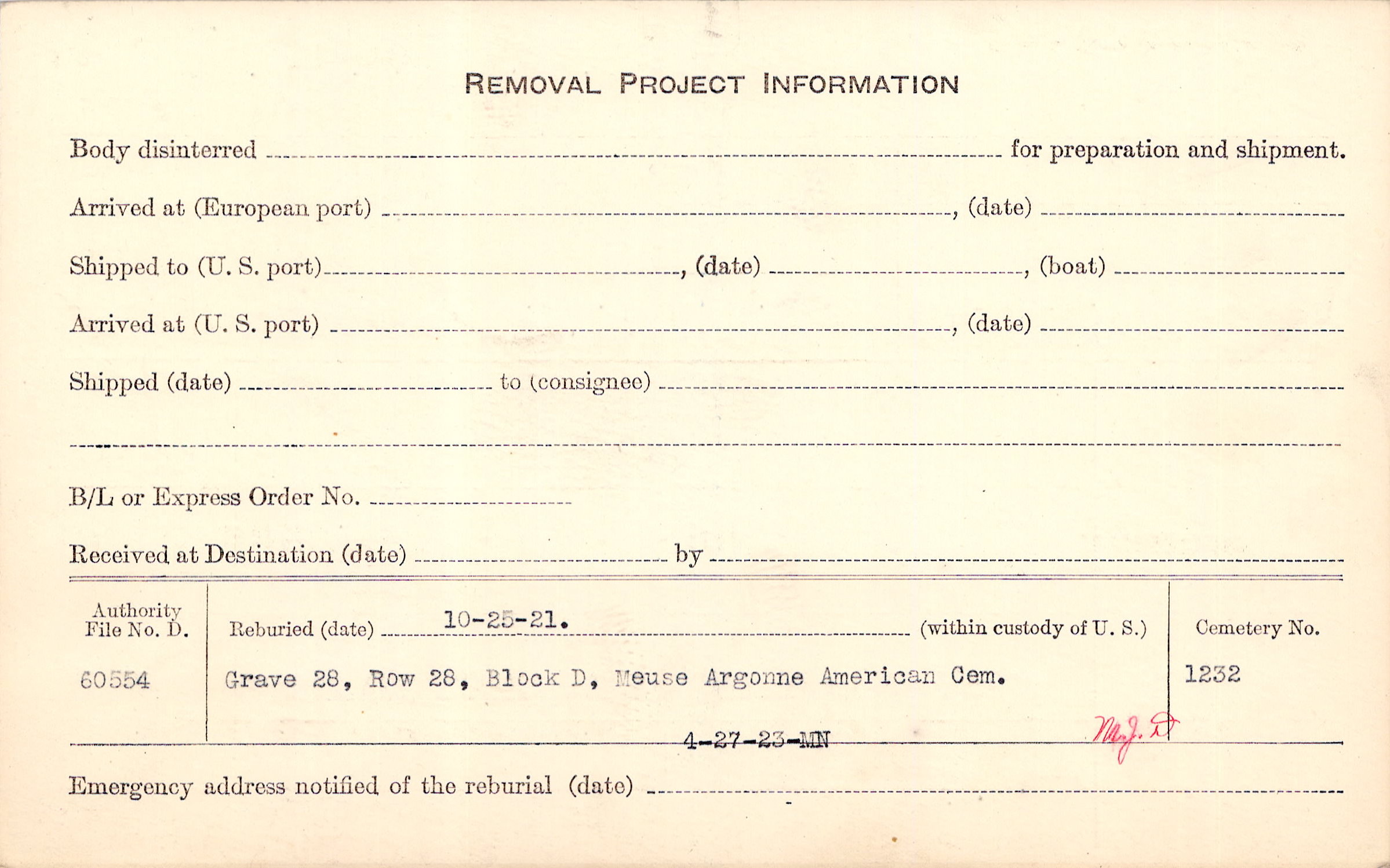 Grave 11, Plot B, Row 1,(Amer. Military) Brizeaux (Meuse)