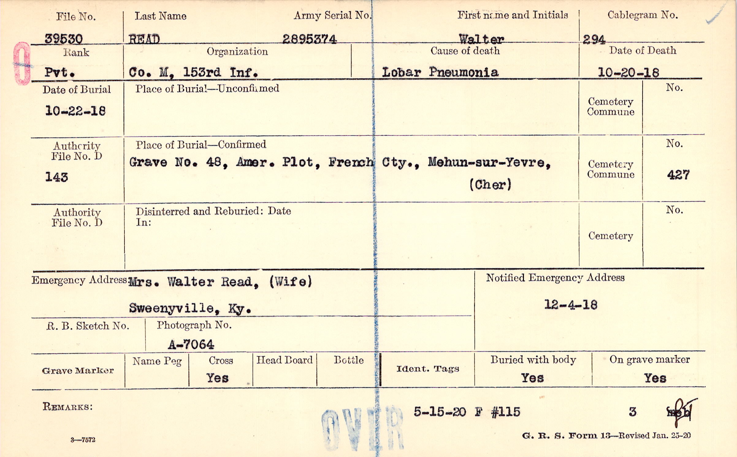 Grave 48, Amer. Plot, French Cty., Mehun-sur-Yevre, (Cher)