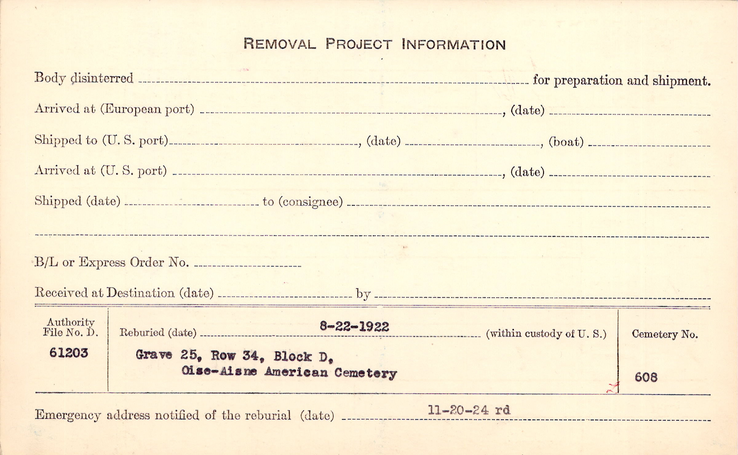 | Permanent Burial in Foreign Cemetery |