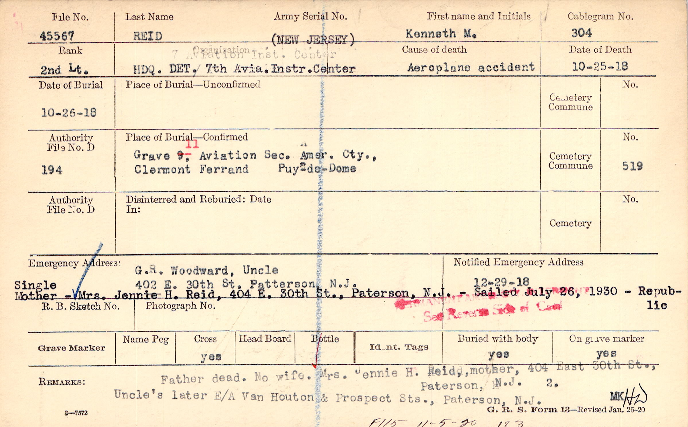 Grave 11, Aviation Sec. Amer. Cty., Clermont Ferrand, Puy-de-Dome.