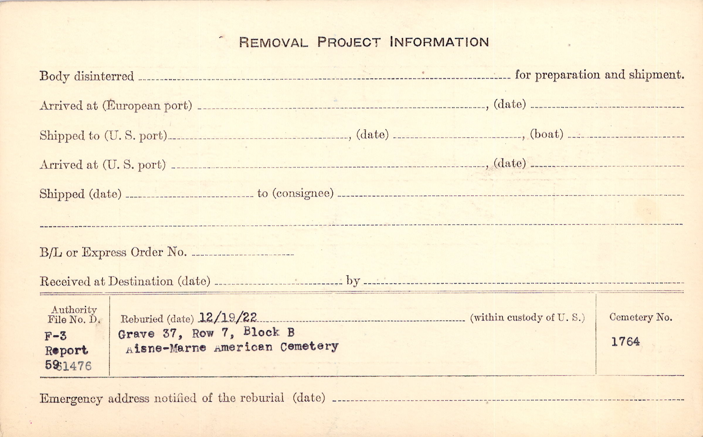 | Permanent Burial in Foreign Cemetery |