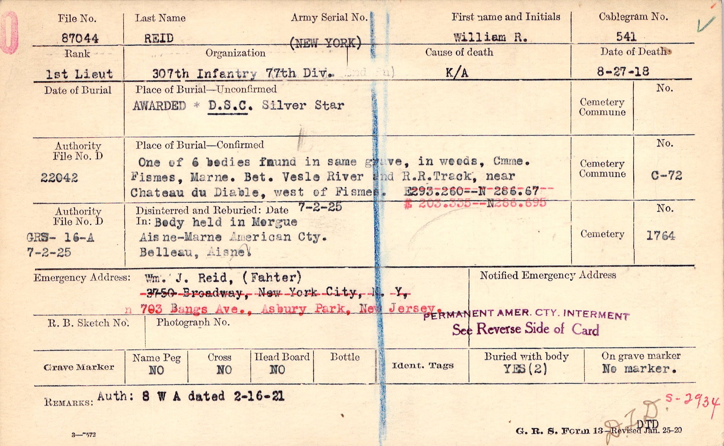 Wm. J. Reid (father), 703 Bangs Ave., Asbury Park, New Jersey.