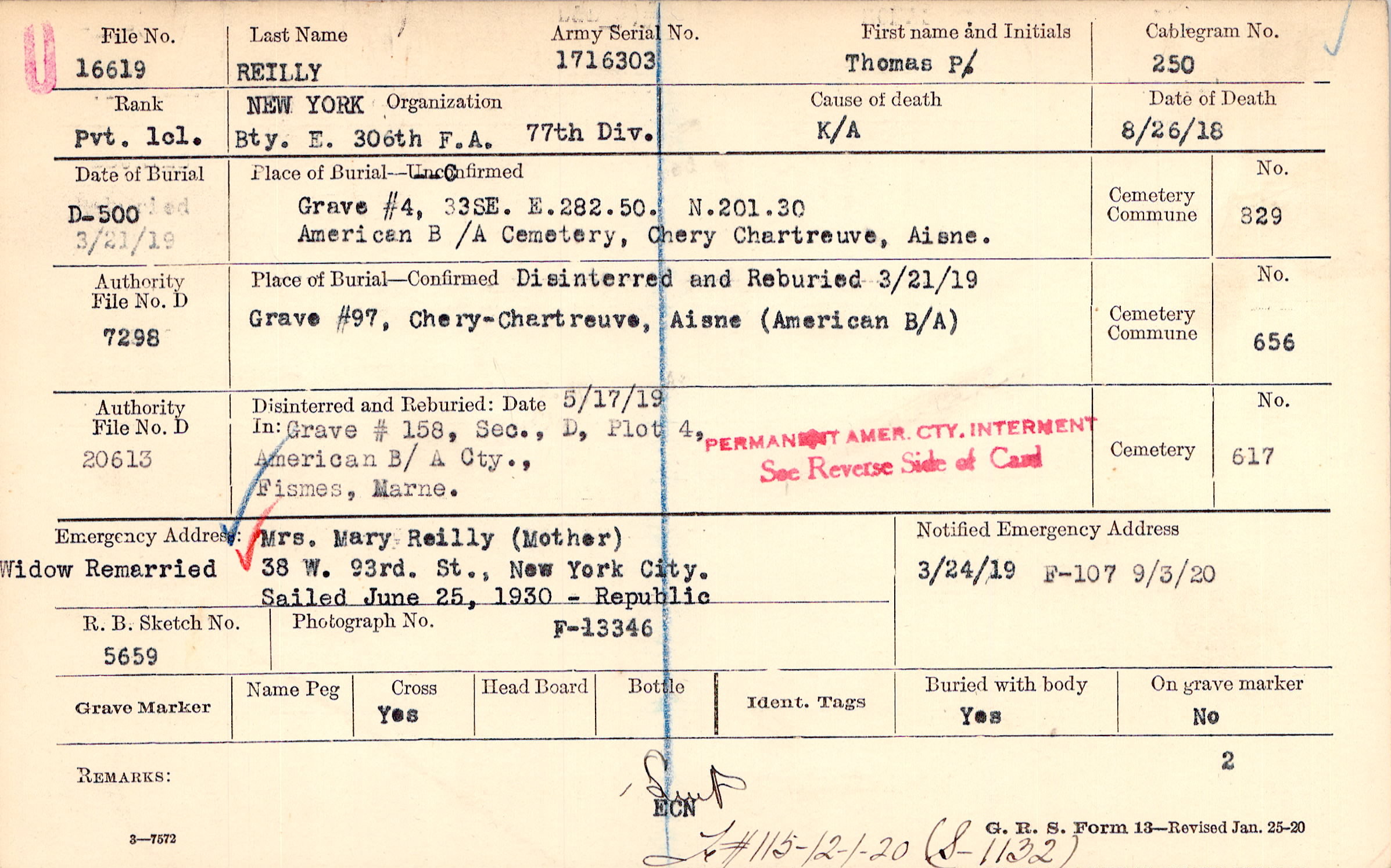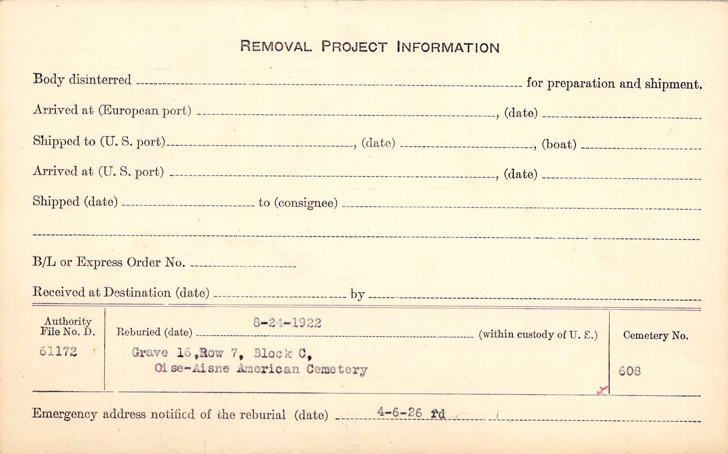 D-500,Grave #4, 33SE,American B/A Cemetary, Chery Chartreuve, Aisne
