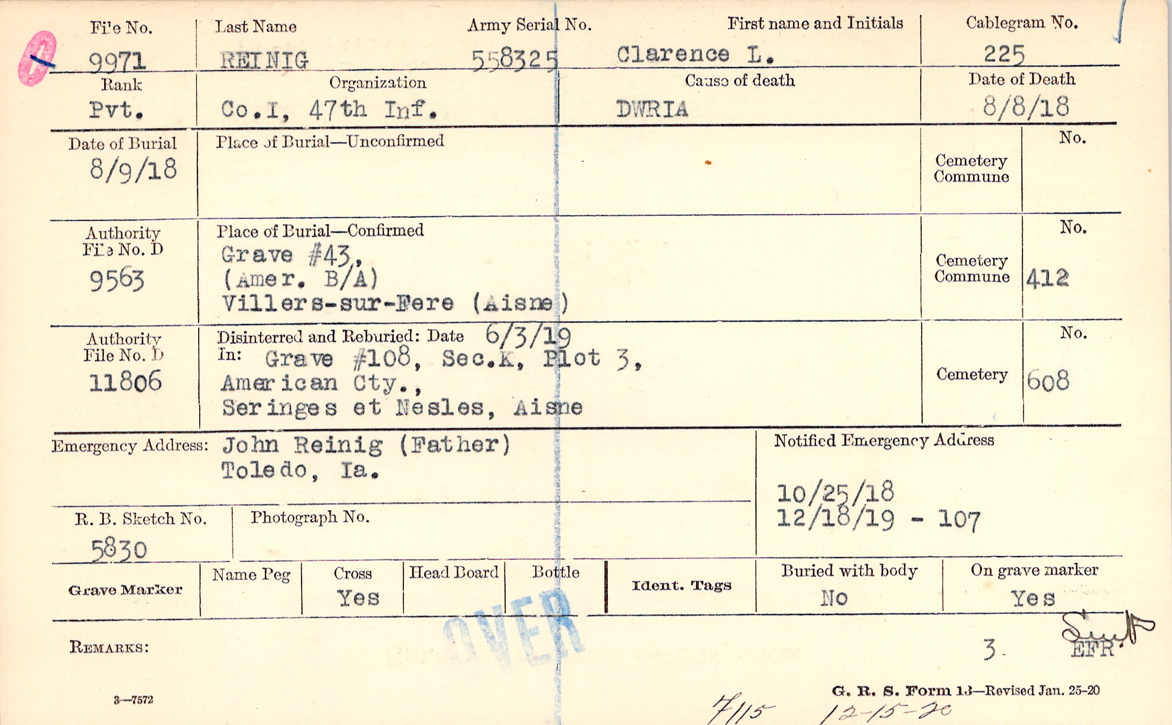 Grave #43, (Amer. B/A), Villers-sur-Fere, (Aisne)