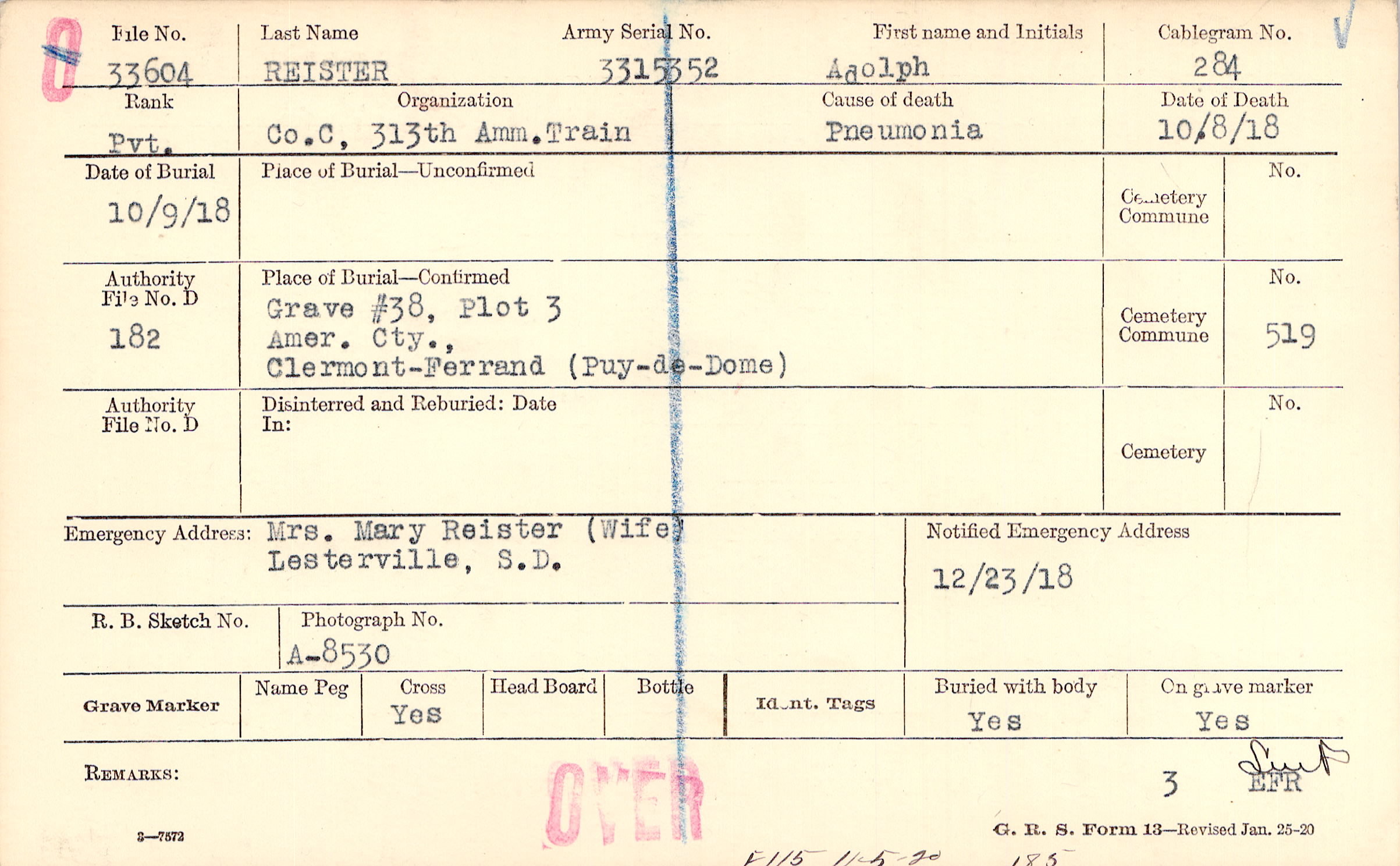 Grave #38, Plot 3, Amer. Cty., Clermont-Ferrand, Puy-de-Dome