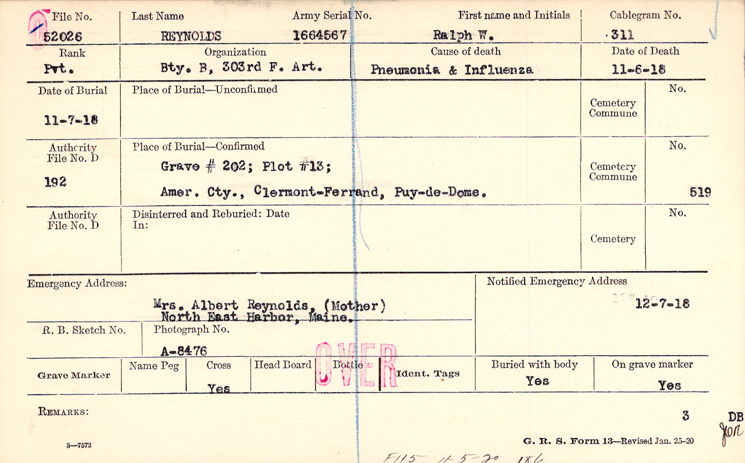 Grave #202, Plot #13, Amer. Cty., Clermont-Ferrand, Puy-de-Dome