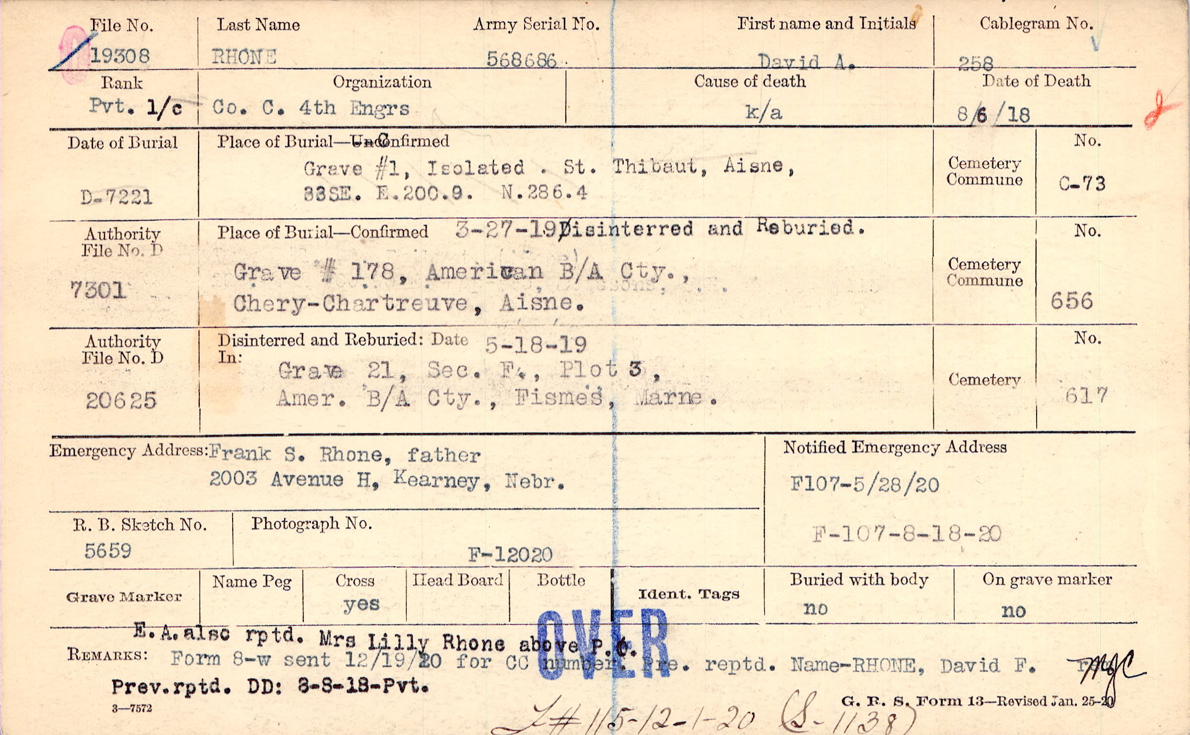 3-27-19 Disinterred and Reburied. Grave #178, American B/A Cty., Chery-Chartreuve, Aisne