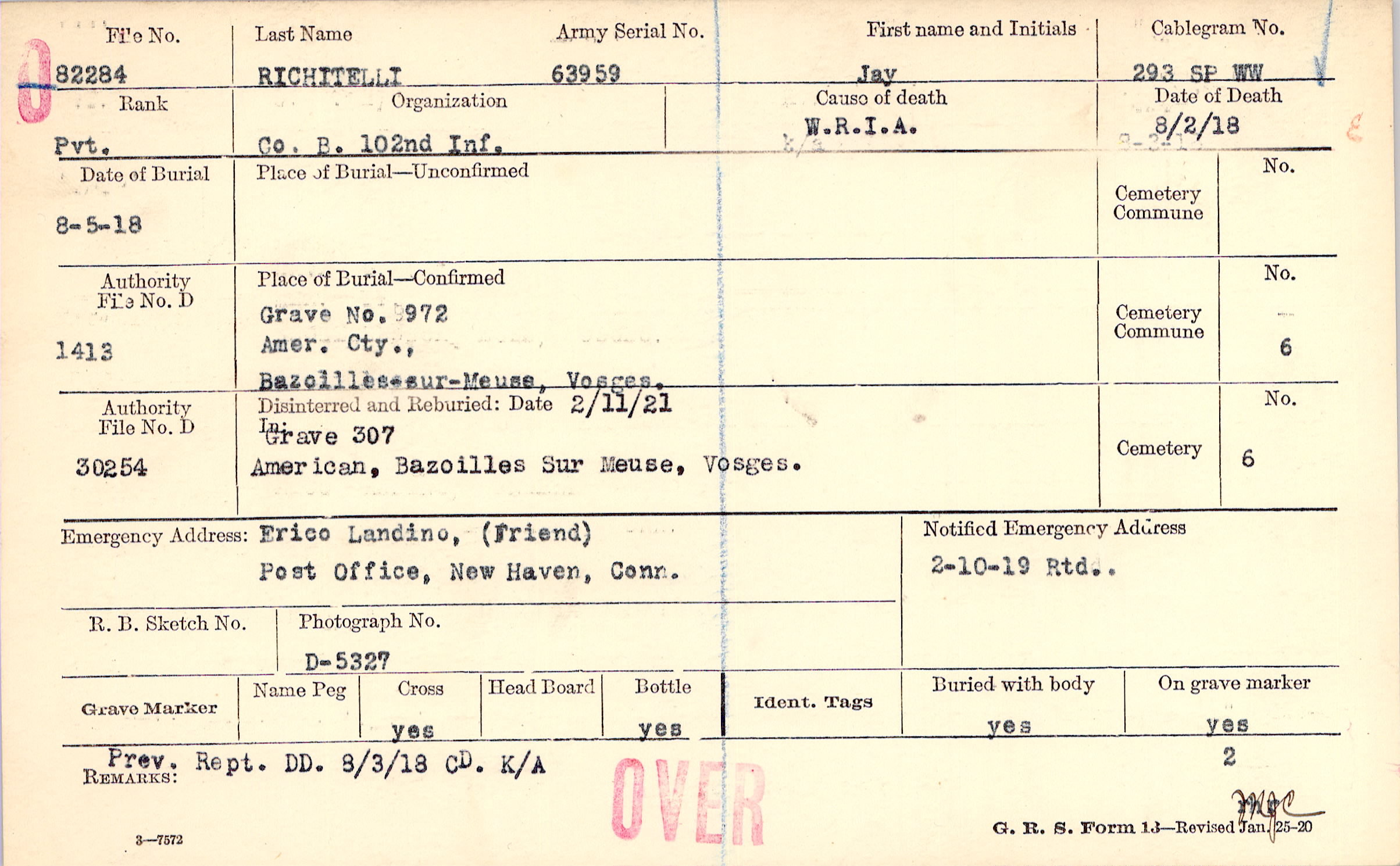Grave 307, American Cemetery, Bazoilles, Vosges