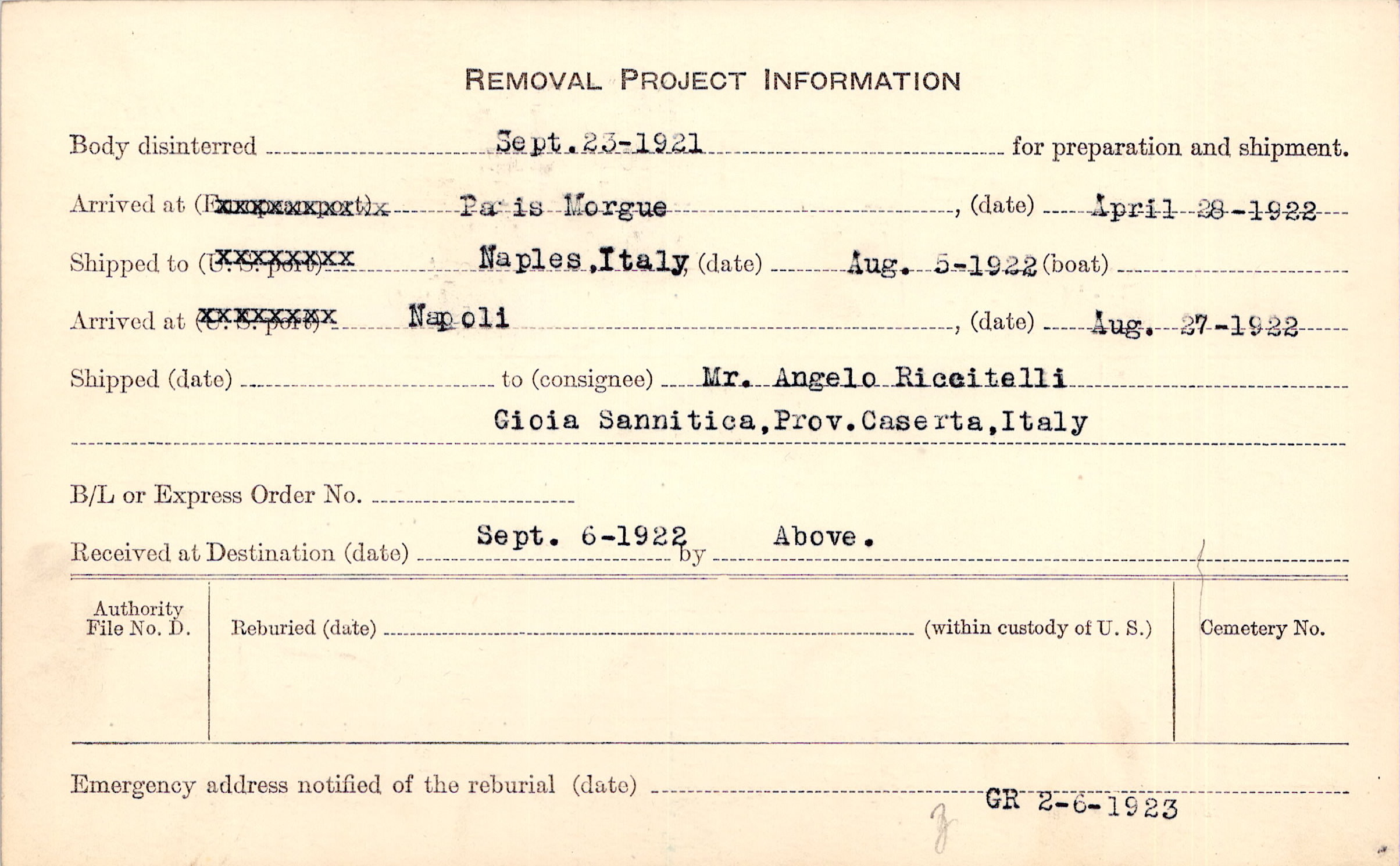 to Mr. Angelo Riccitelli, Gioia Sannitica, Prov. Caserta, Italy
