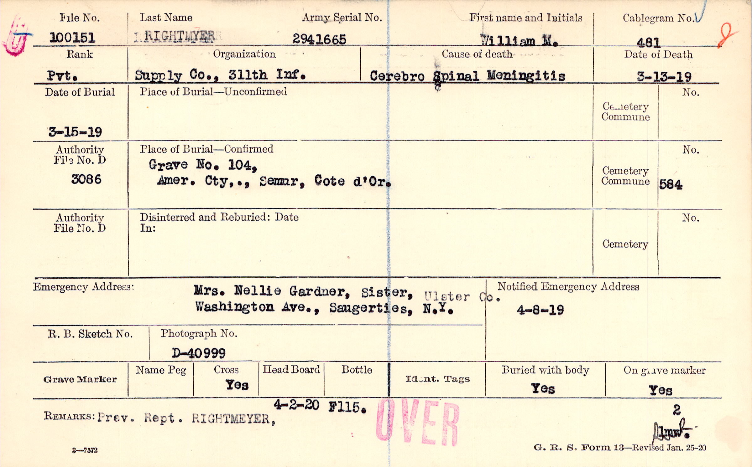 Grave 104, Amer. Cty., Semur, Cote d'Or.