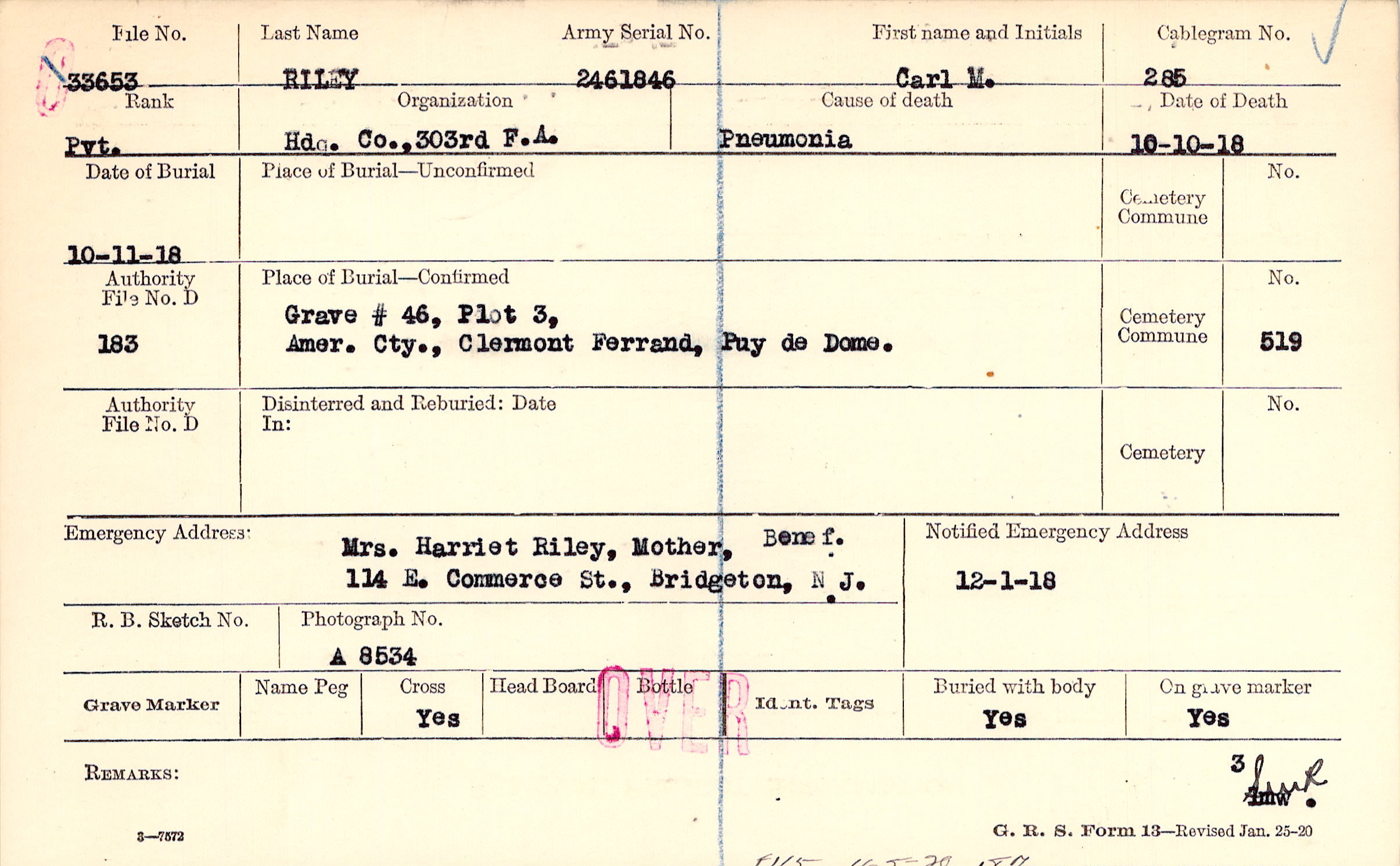 Grave #46, Plot 3,Amer. Cty., Clermont Ferrand, Puy de Dome.