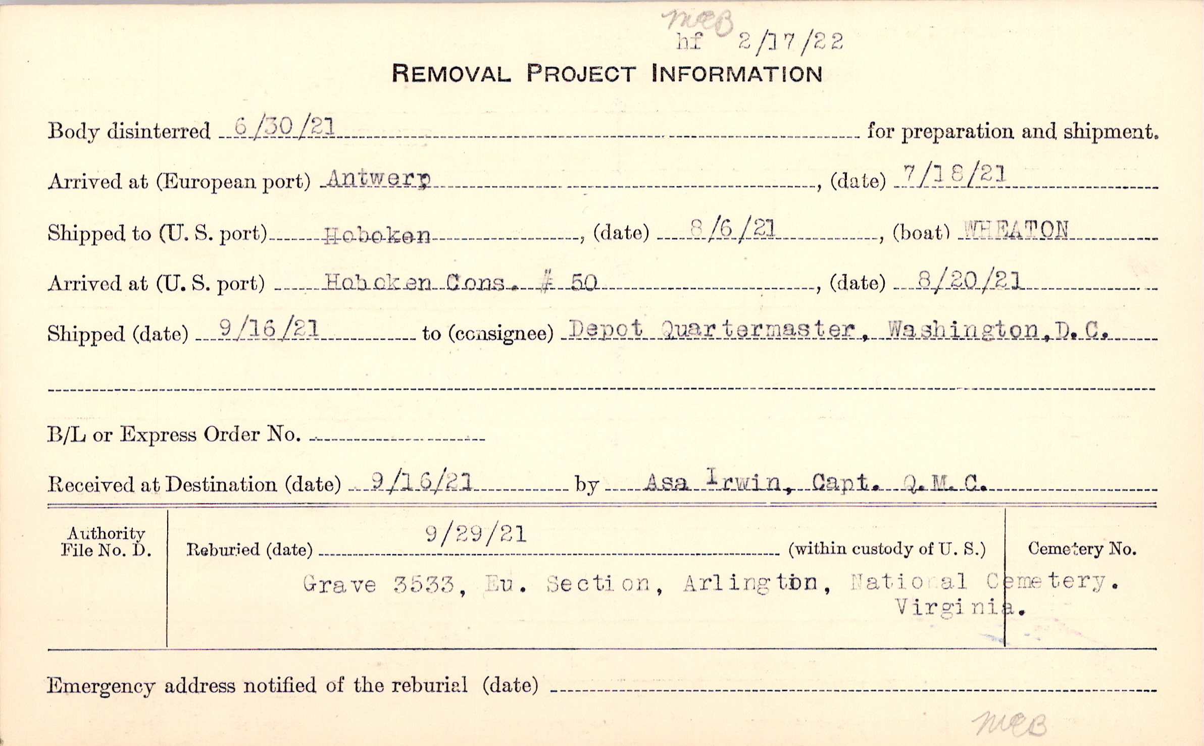 Form 21A: 2/1/1919, ( Form 36: ) 4/22/1919
