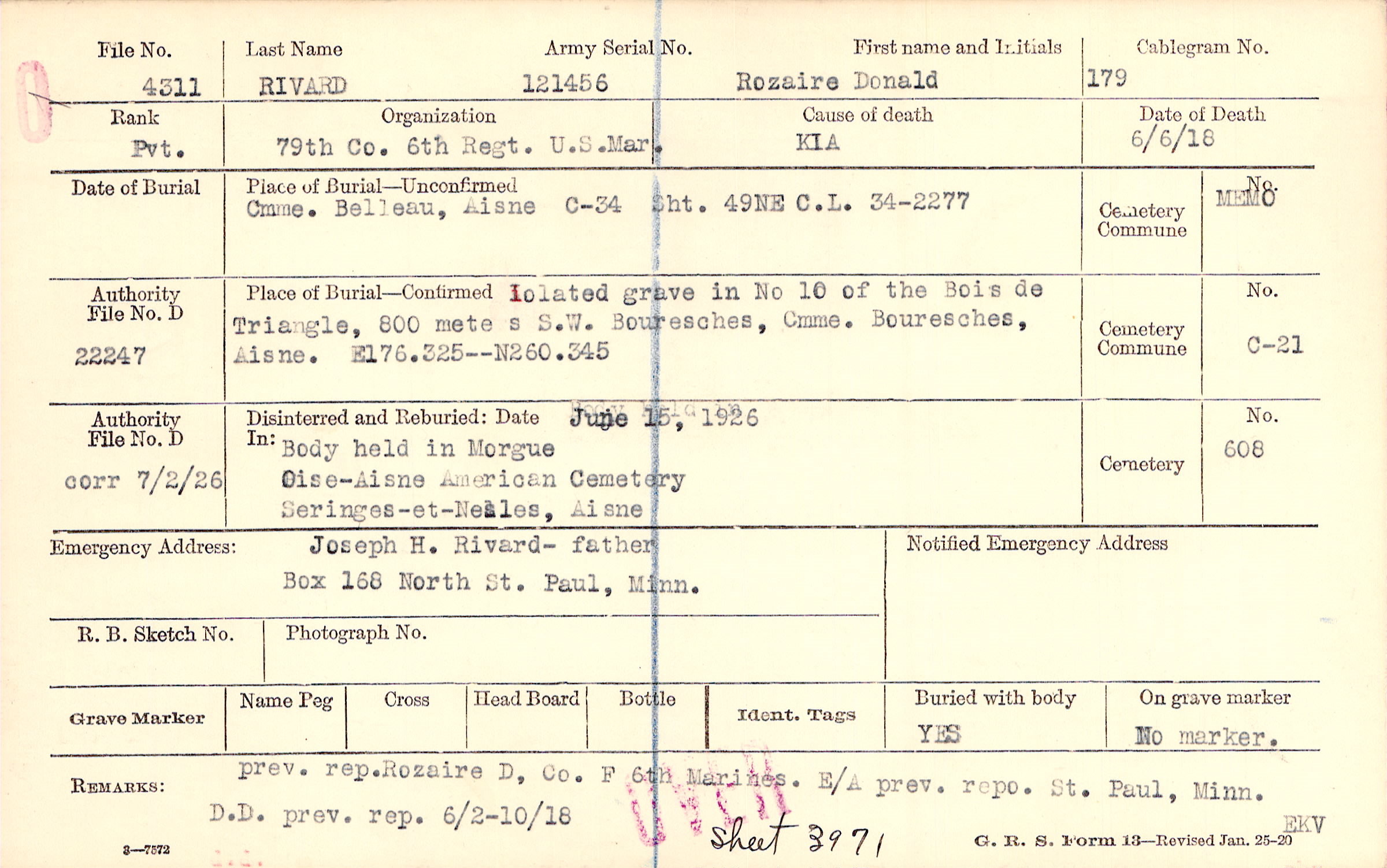 Joseph H. Rivard- father, Box 168 North St. Paul, Minn.