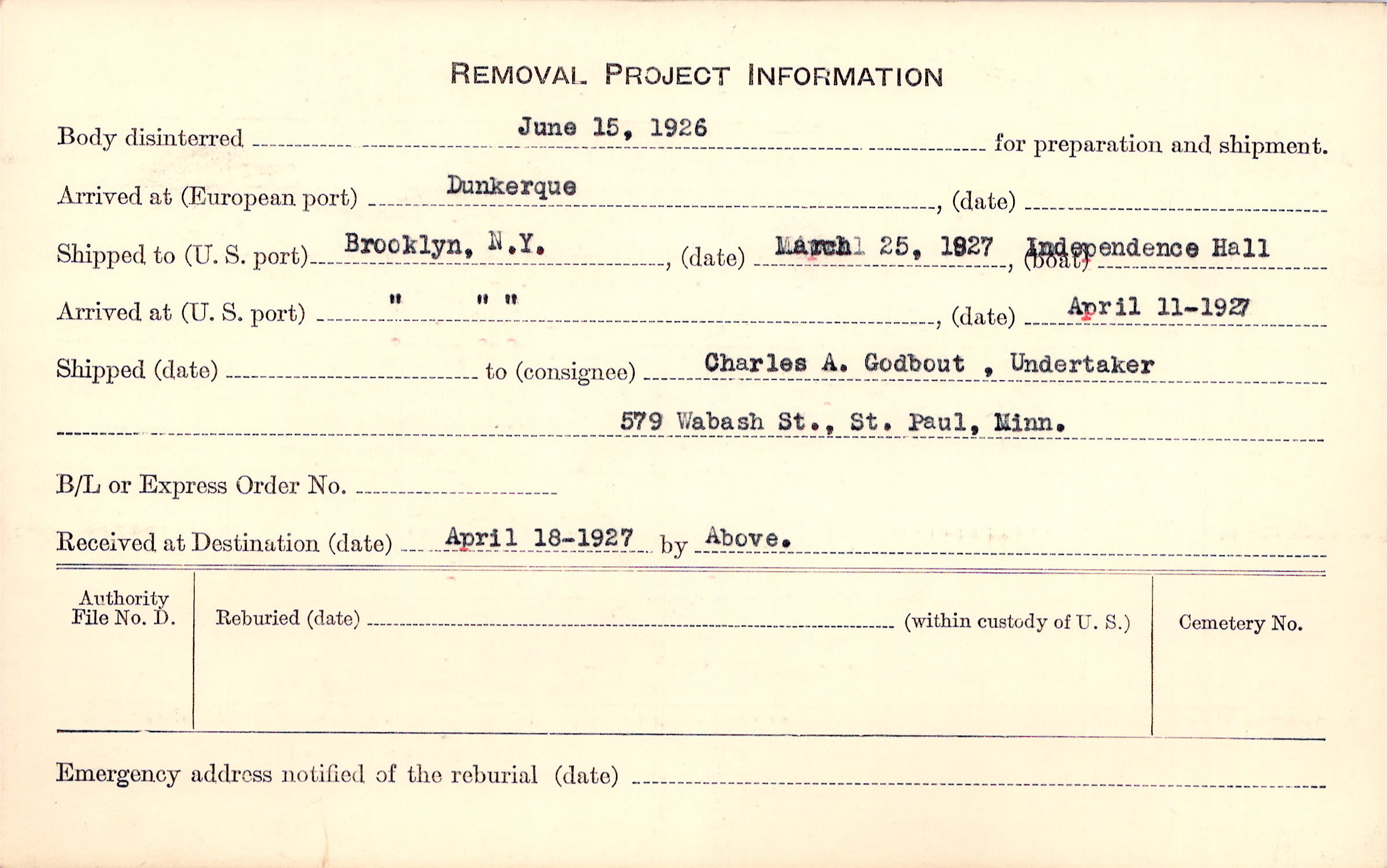 to Charles A. Godbout, Undertaker, 579 Wabash St., St. Paul, Minn.