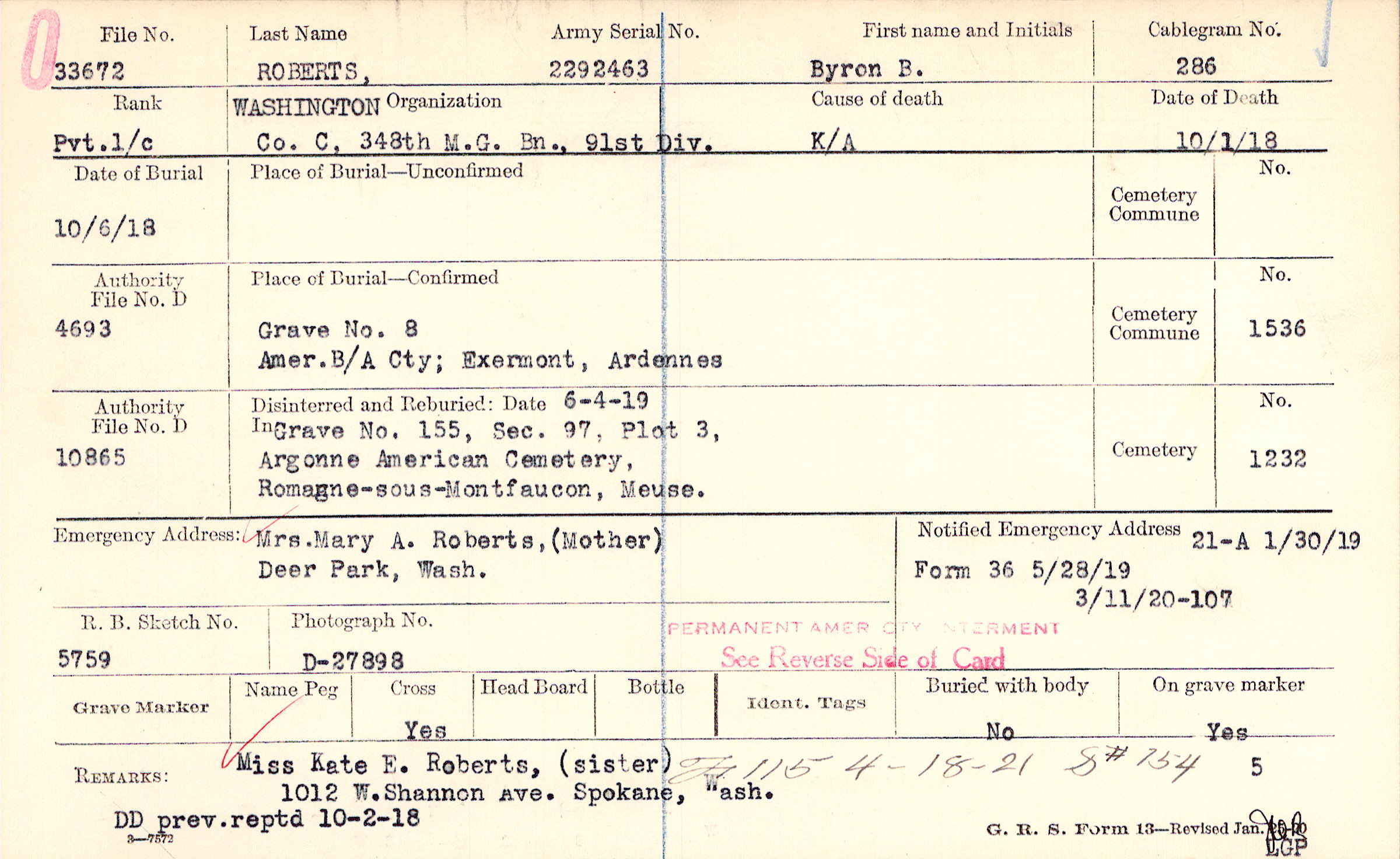 Grave 8, Amer. B/A Cty., Exermont, Ardennes