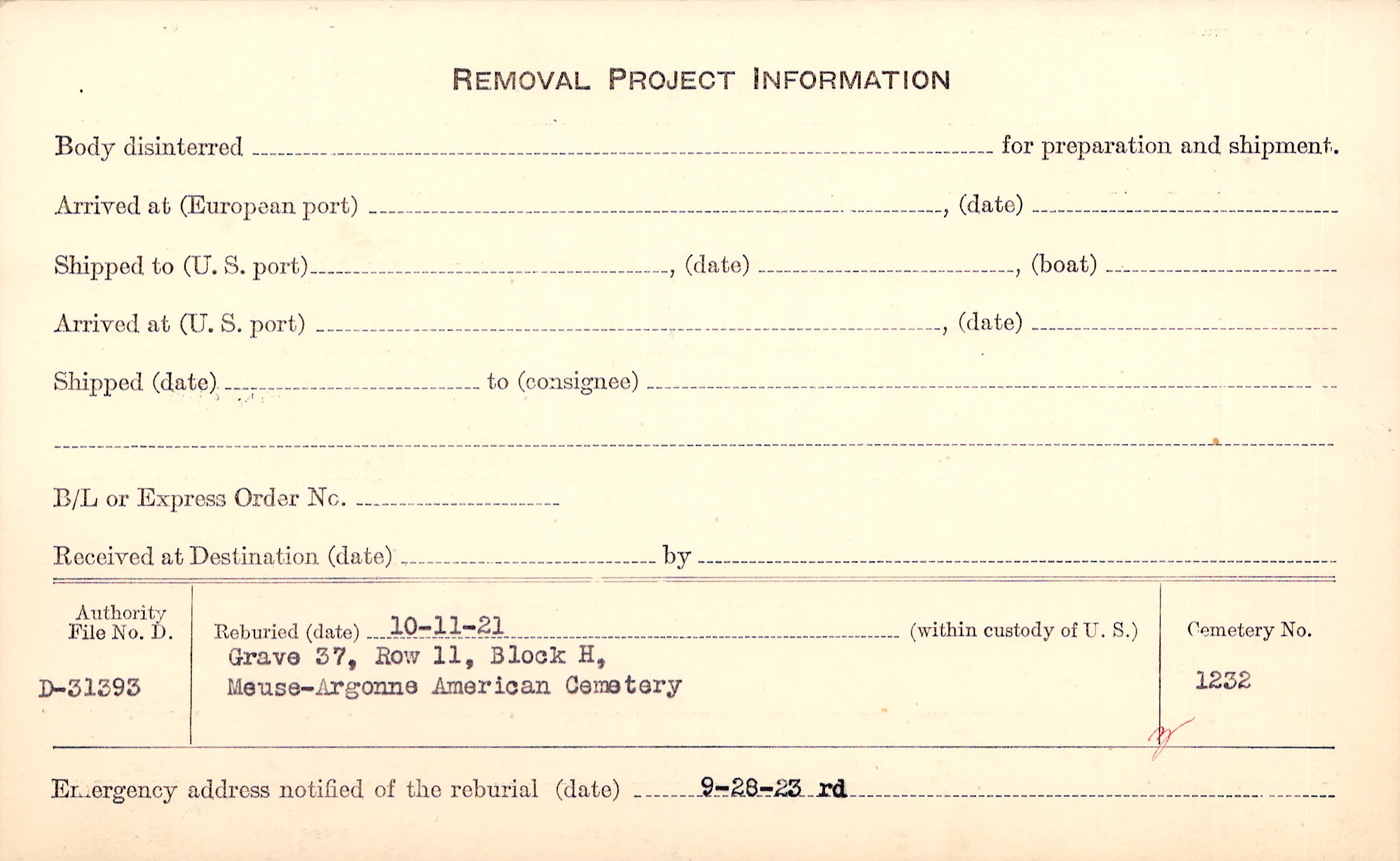 Grave 33, Section 87, Plot 1, Argonne American Cemetery, Romagne-sous-Montfaucon, Meuse