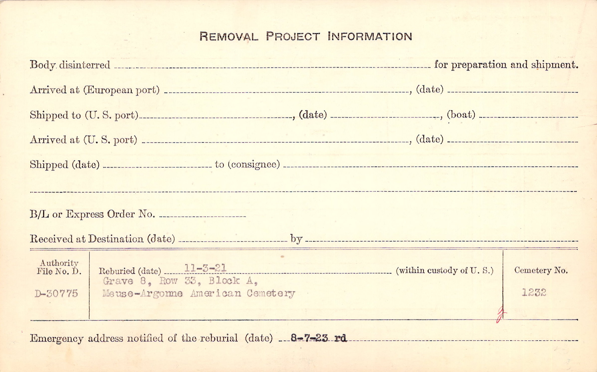 Grave 21, Section 53, Plot 1, Argonne American Cemetery, Romagne-sous-Montfaucon, Meuse