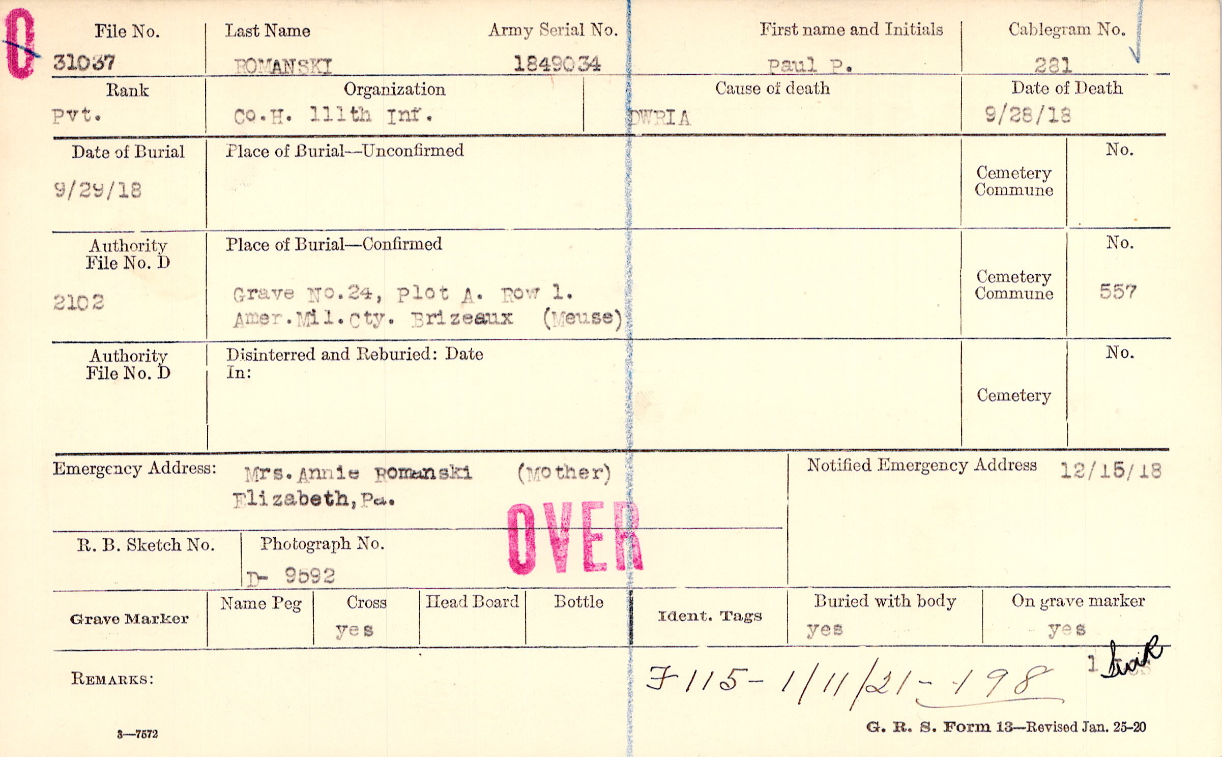 Mrs. Annie Romanski (Mother), Elizabeth, Pa.