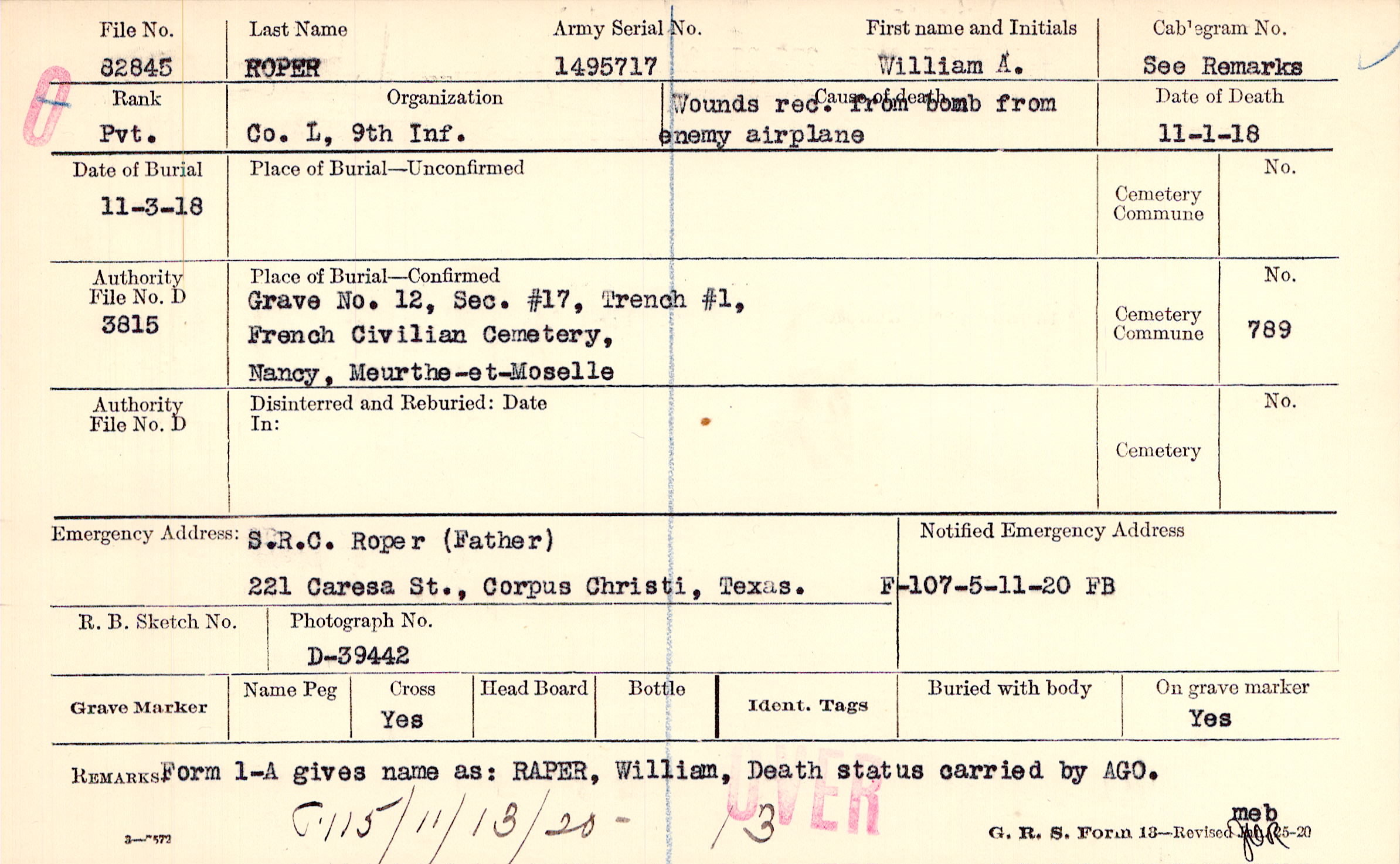 S.R.C. Roper (Father), 221 Caresa St., Corpus Christi, Texas.