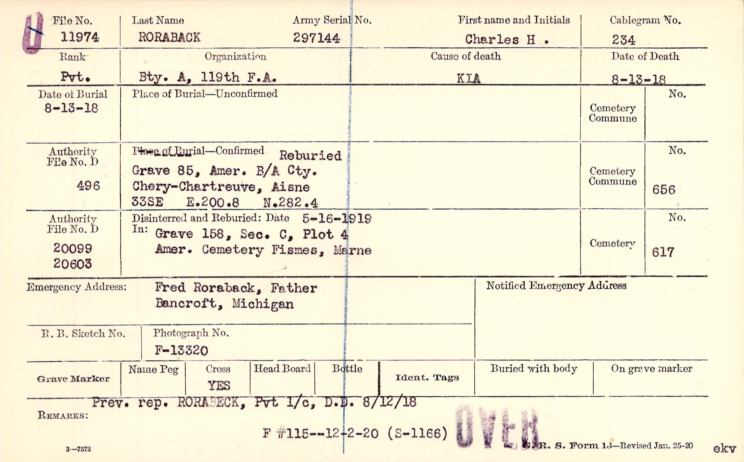 #Reburied, Grave 85, Amer. B/A Cty., Chery-Chartreuve, Aisne, 33SE