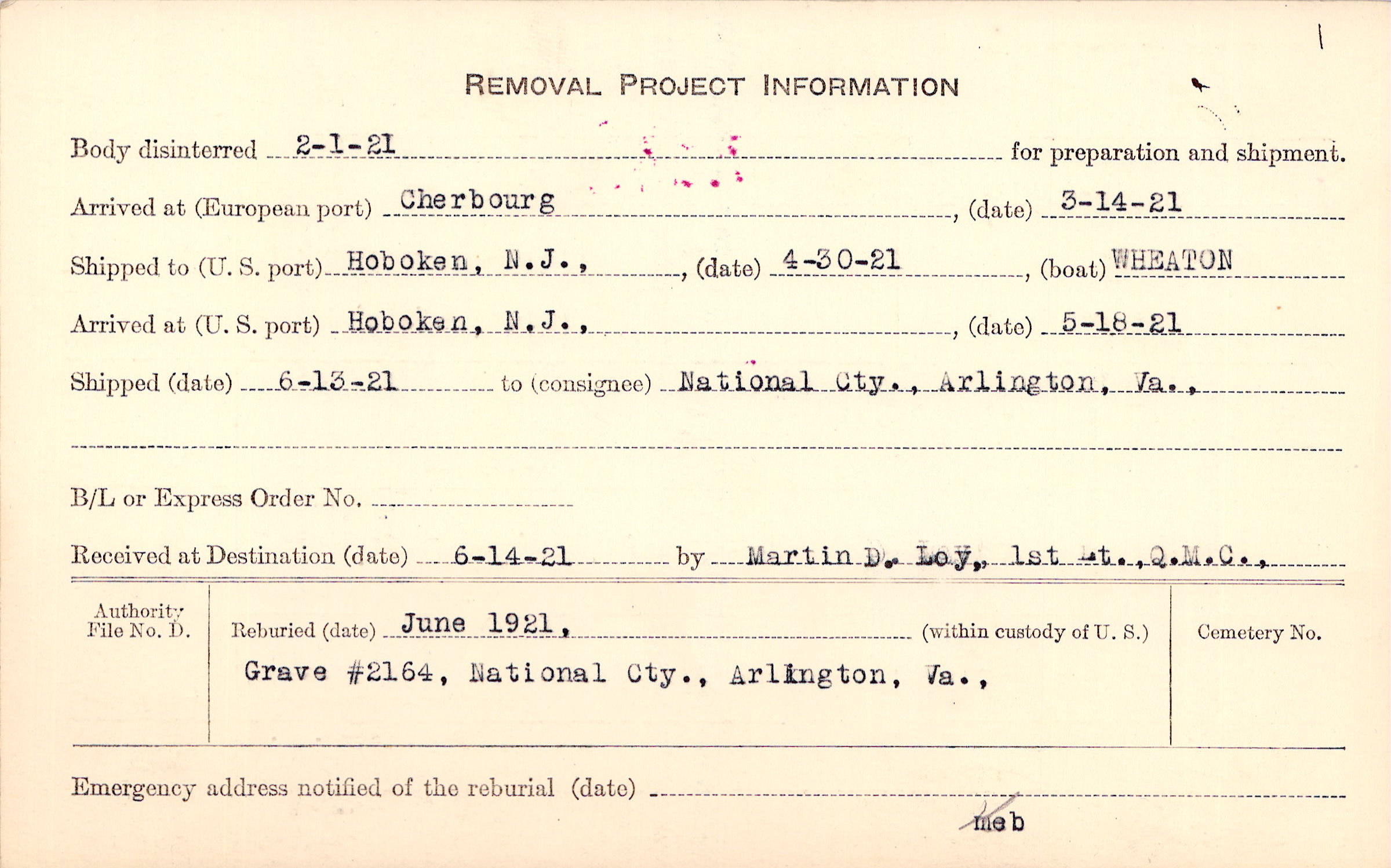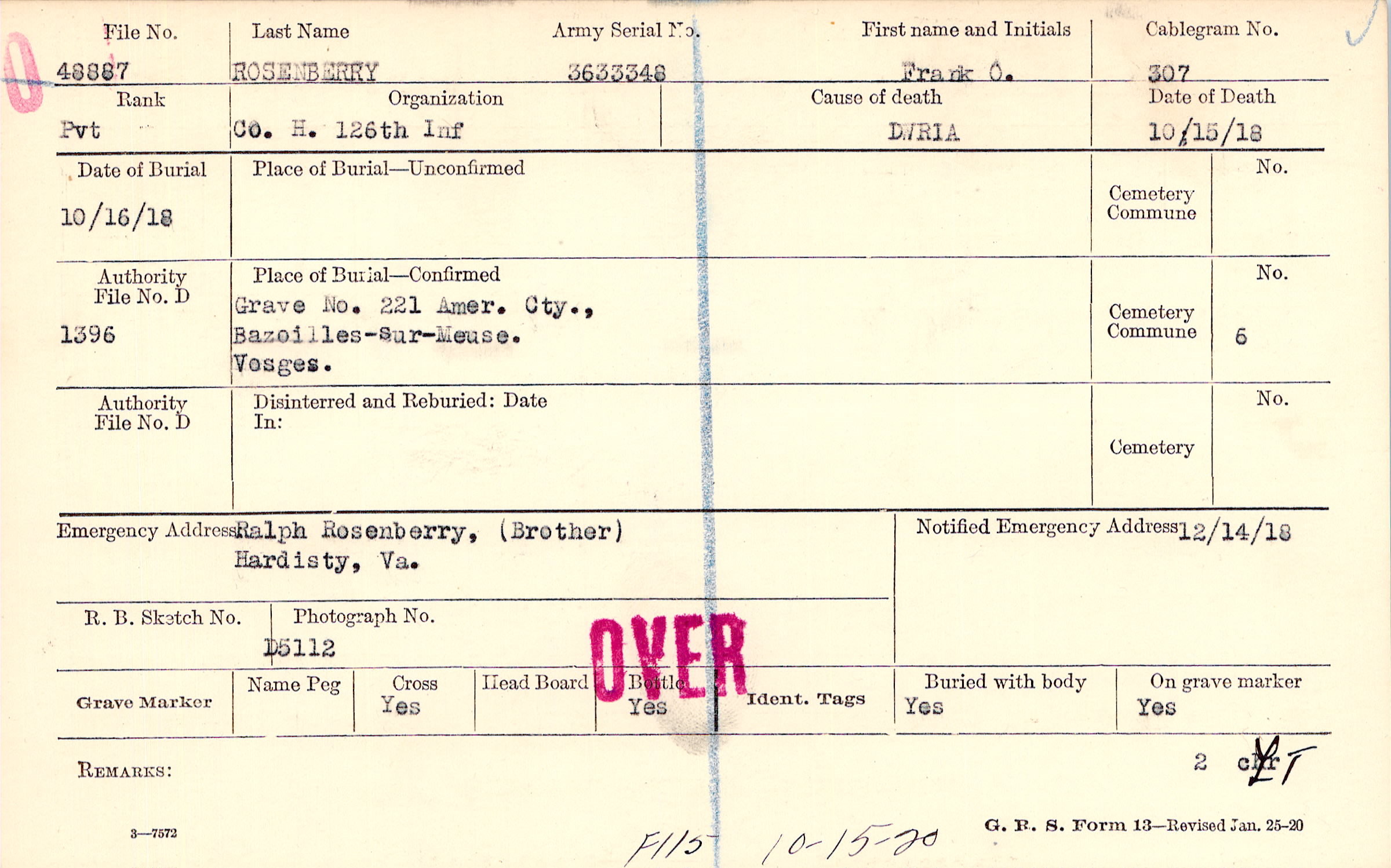 Grave 221, Amer. Cty., Bazoilles-sur-Meuse, Vosges.