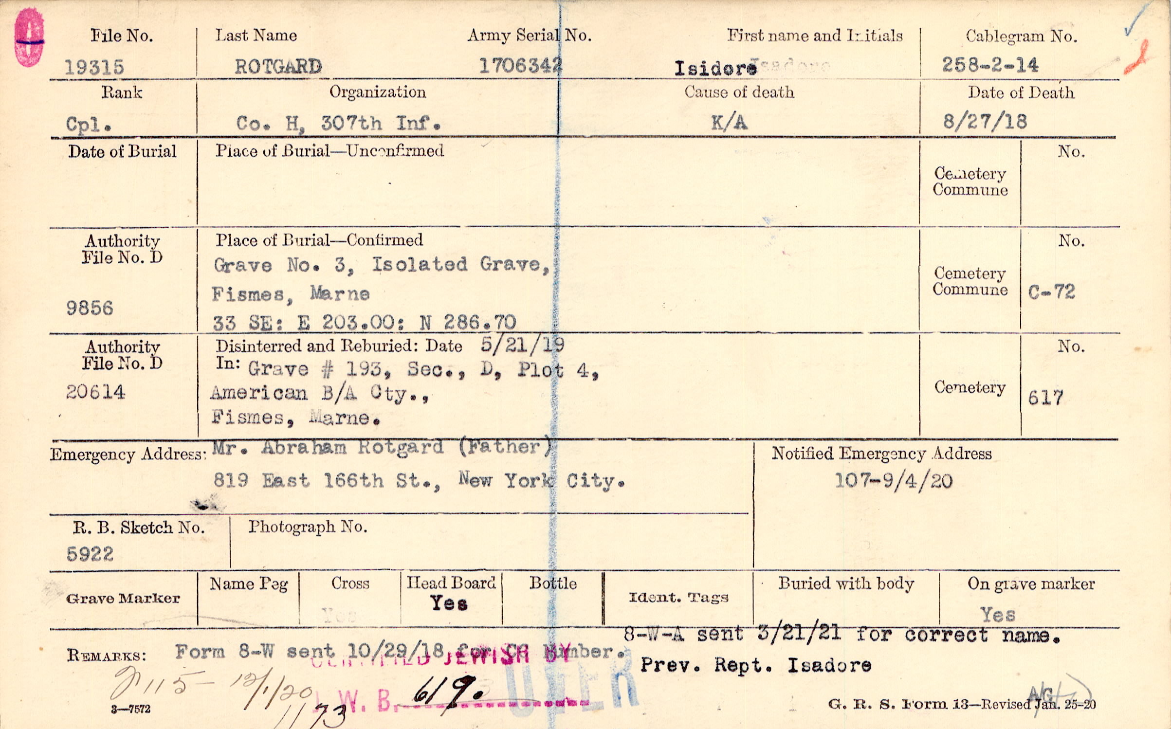 Mr. Abraham Rotgard (Father), 819 East 166th St., New York City.