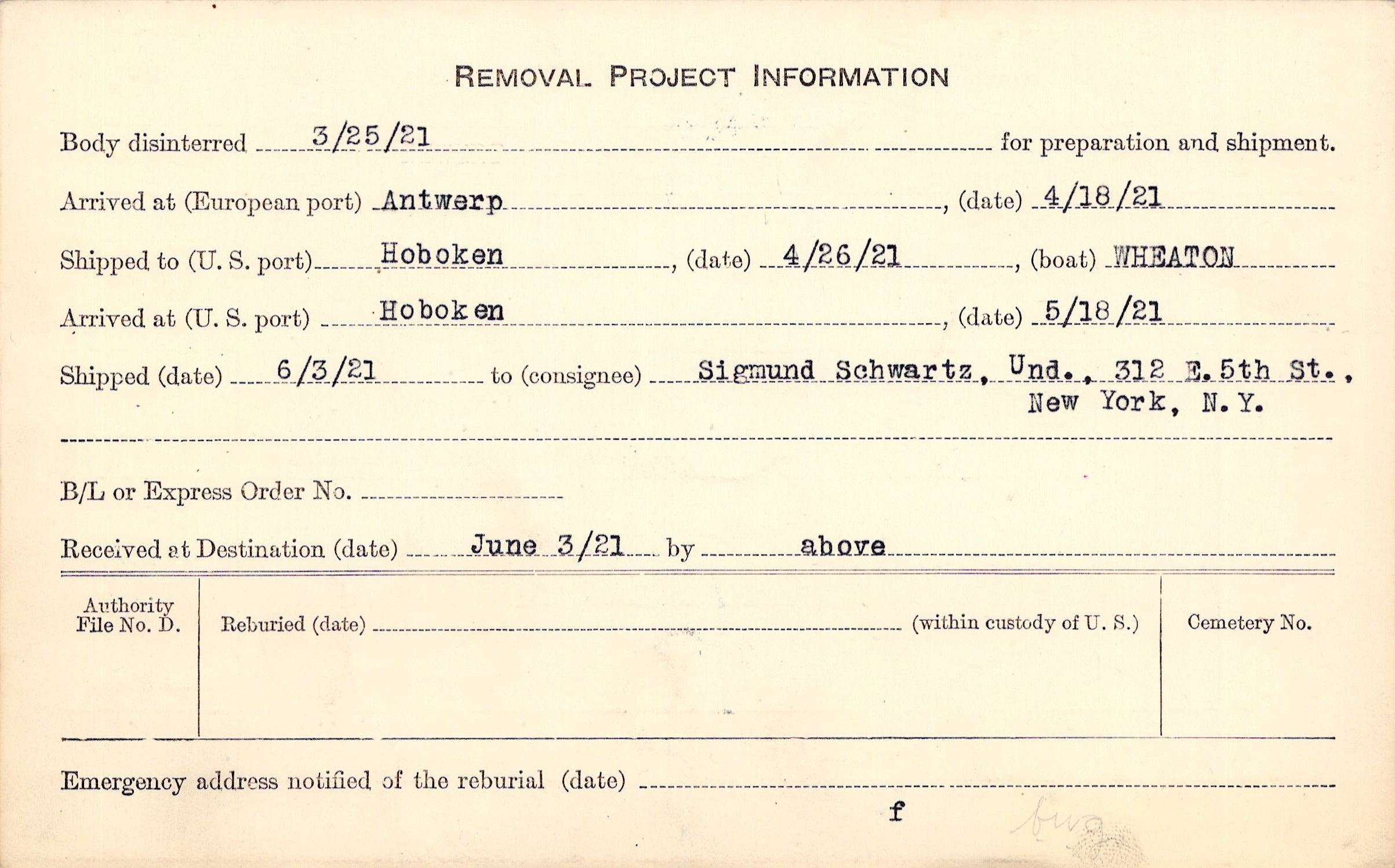 to Sigmund Schwartz, Und., 312 E. 5th St., New York, N.Y.