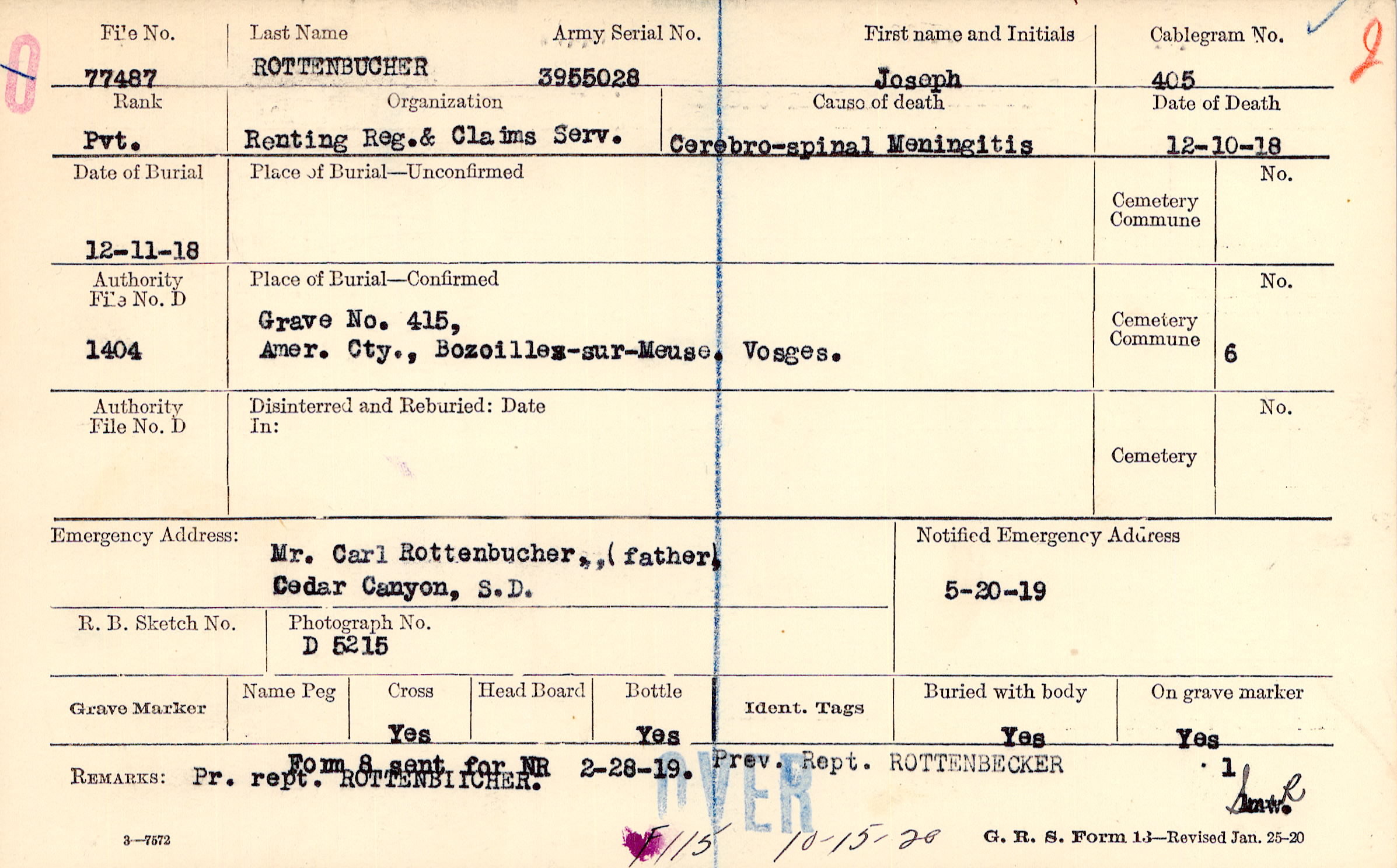 Mr. Carl Rottenbucher,,(father), Cedar Canyon, S.D.