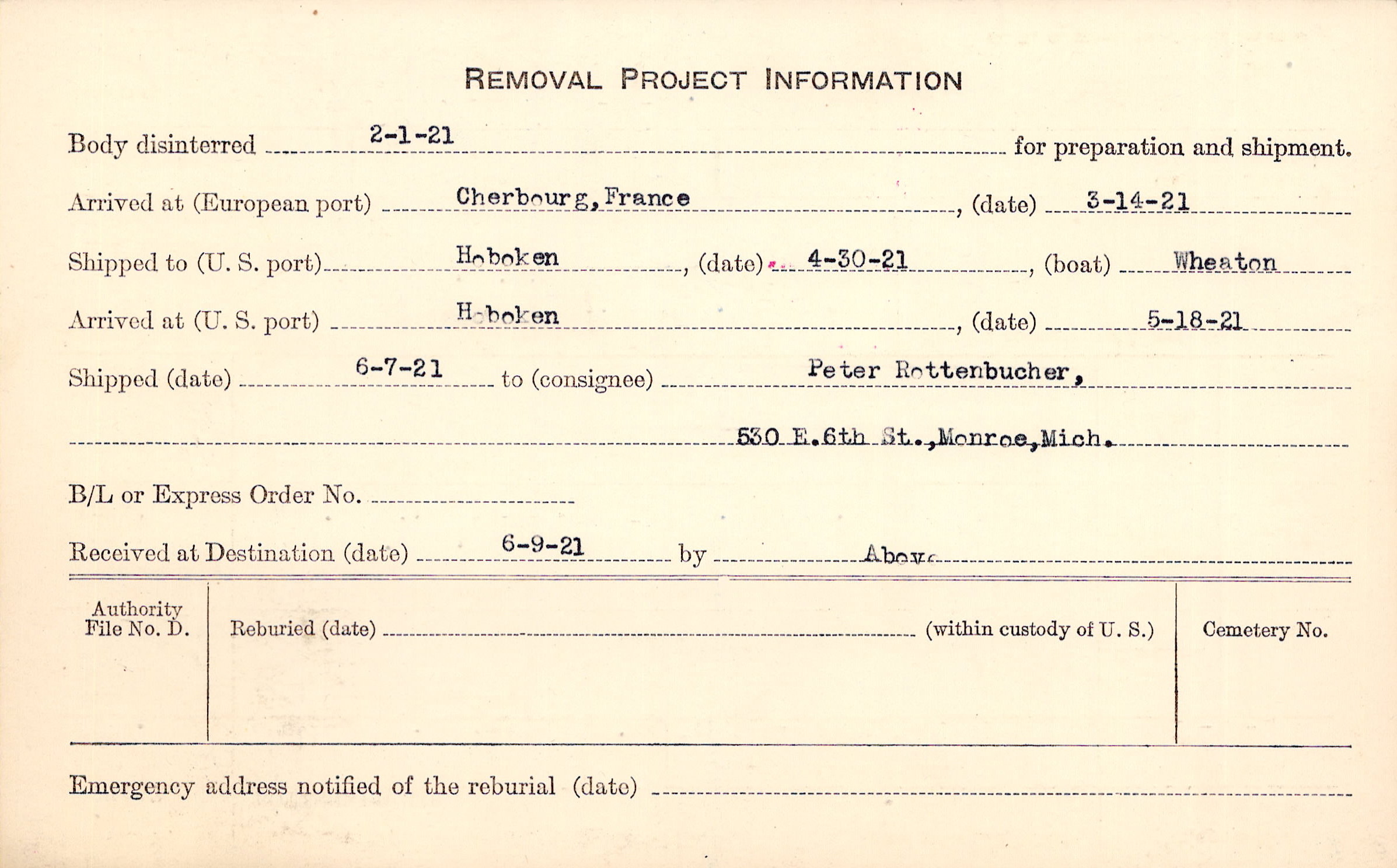 to Peter Rottenbucher, 530 E. 6th St., Monroe, Mich.