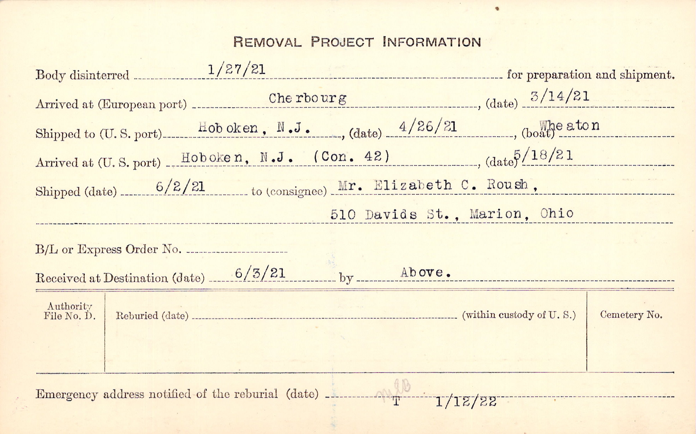 to Mr. Elizabeht C. Roush, 510 Davids St., Marion, Ohio
