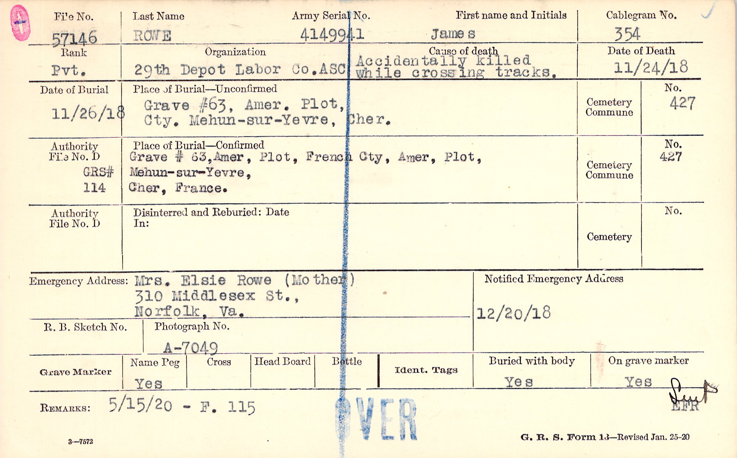 Grave #63, Amer. Plot, Cty., Mehun-sur-Yevre, Cher.
